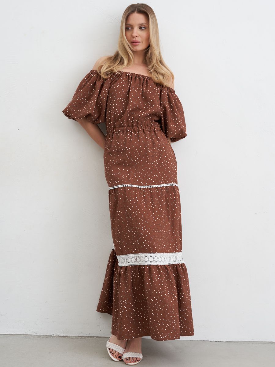 – романтический образ– отделка белым кружевом– мягкие резинки по верху платья, на рукавах и в области талии комфортно фиксируют платье– объемные рукава-фонарикисоздают WOW-эффект– боковые карманы