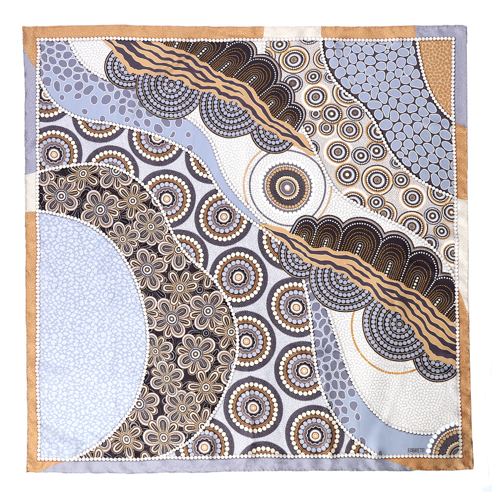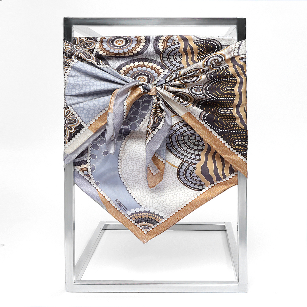Классический женский платок итальянского бренда FABRETTI из натурального шелка с интересным абстрактным узором, сложенным из горошин разного размера, цвета и формы в серо-голубых и золотисто-бежевых тонах.Этот романтичный аксессуар будет прекрасно смотреться с повседневным гардеробом, с одеждой из замши и натуральных тканей. У платка ручная подшивка краев.Шелковый платок сохраняет актуальность вне модных тенденций — это классика, которая не выходит из моды, изысканный подарок, подчеркивающий особое отношение.Размер 90*90 см.
