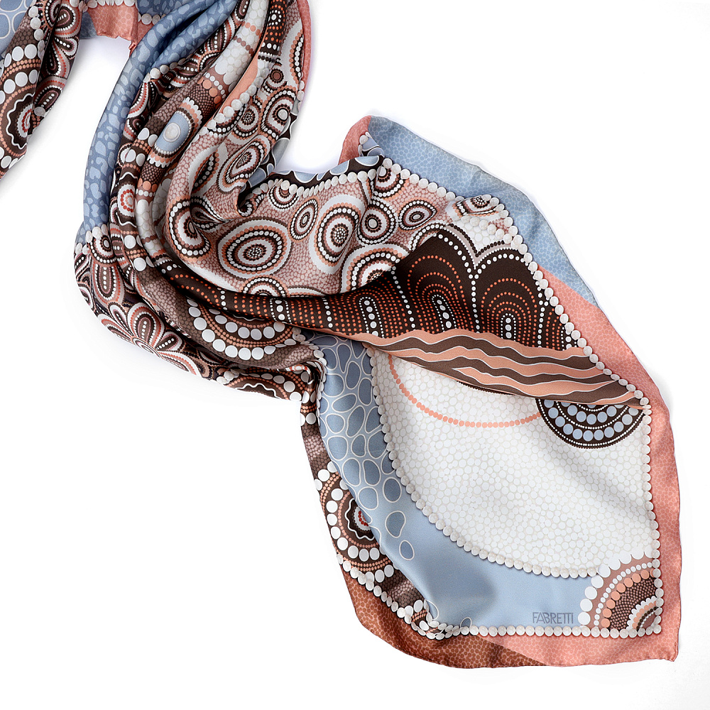 Классический женский платок итальянского бренда FABRETTI из натурального шелка с интересным абстрактным узором, сложенным из горошин разного размера, цвета и формы в нежных коралловых и голубых тонах.Этот романтичный аксессуар будет прекрасно смотреться с повседневным гардеробом, с одеждой из замши и натуральных тканей. У платка ручная подшивка краев.Шелковый платок сохраняет актуальность вне модных тенденций — это классика, которая не выходит из моды, изысканный подарок, подчеркивающий особое отношение.Размер 90*90 см.