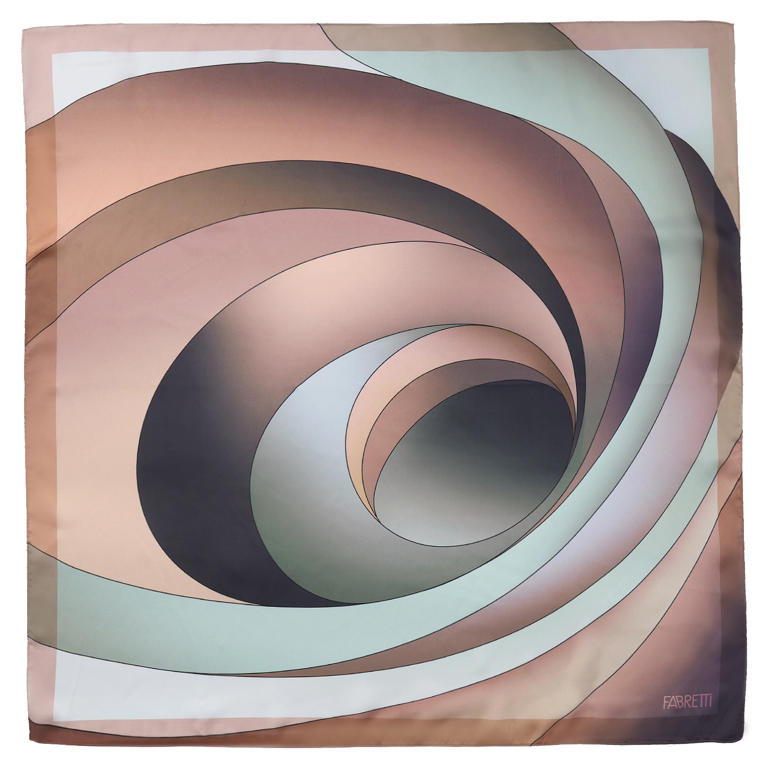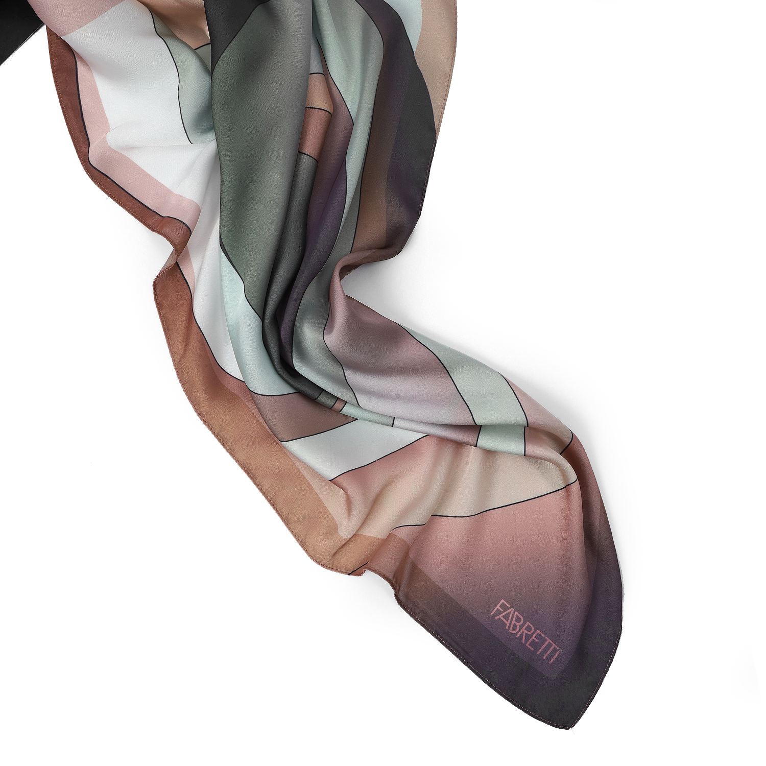 Оригинальный женский платок итальянского бренда FABRETTI из искусственного шелка в мягких оттенках зеленого, бежевого и коричневого тонов с абстрактным узором из линий.Точно подобранное сочетание оттенков, плавные градиенты и изгибы линий делают из этого платка акцентный аксессуар, притягивающий взгляд. Он с легкостью «разбавит» однотонный образ или объединит собой одежду в разных тонах.Легкий искусственный шелк, с его гладкостью и блеском, отлично сочетается как с натуральными, так и искусственными материалами, особенно гладких и матовых фактур. Этот платок подойдет не только для ношения на шее, им можно украсить волосы или сумку. Сложный узор прекрасно смотрится и в драпировке, и полностью развернутым.Размер 70*70 см.