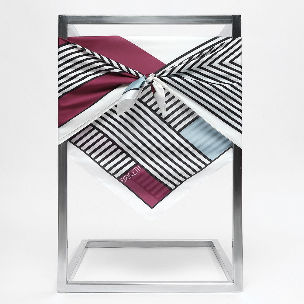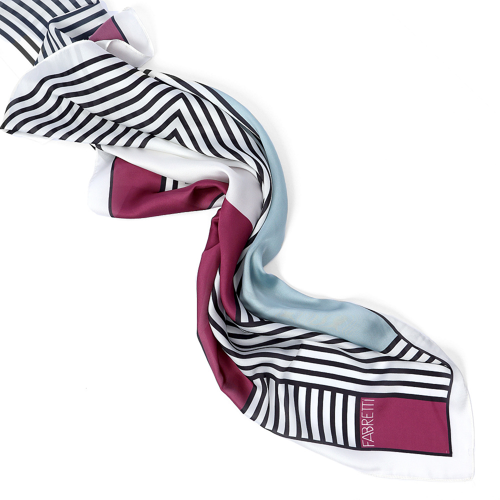 Лаконичный женский платок итальянского бренда FABRETTI из искусственного шелка со строгим геометрическим узором из квадратов и линий в бордовом тоне.Платок с геометрией делает повседневный образ строже, а деловой – разбавляет яркими акцентами. Этот платок создан для привлечения внимания и не требует других акцентных аксессуаров.Легкий искусственный шелк, с его гладкостью и блеском, отлично сочетается как с натуральными, так и искусственными материалами, особенно гладких и матовых фактур.Размер 70*70 см.