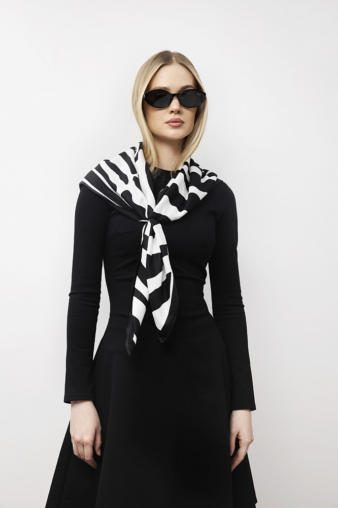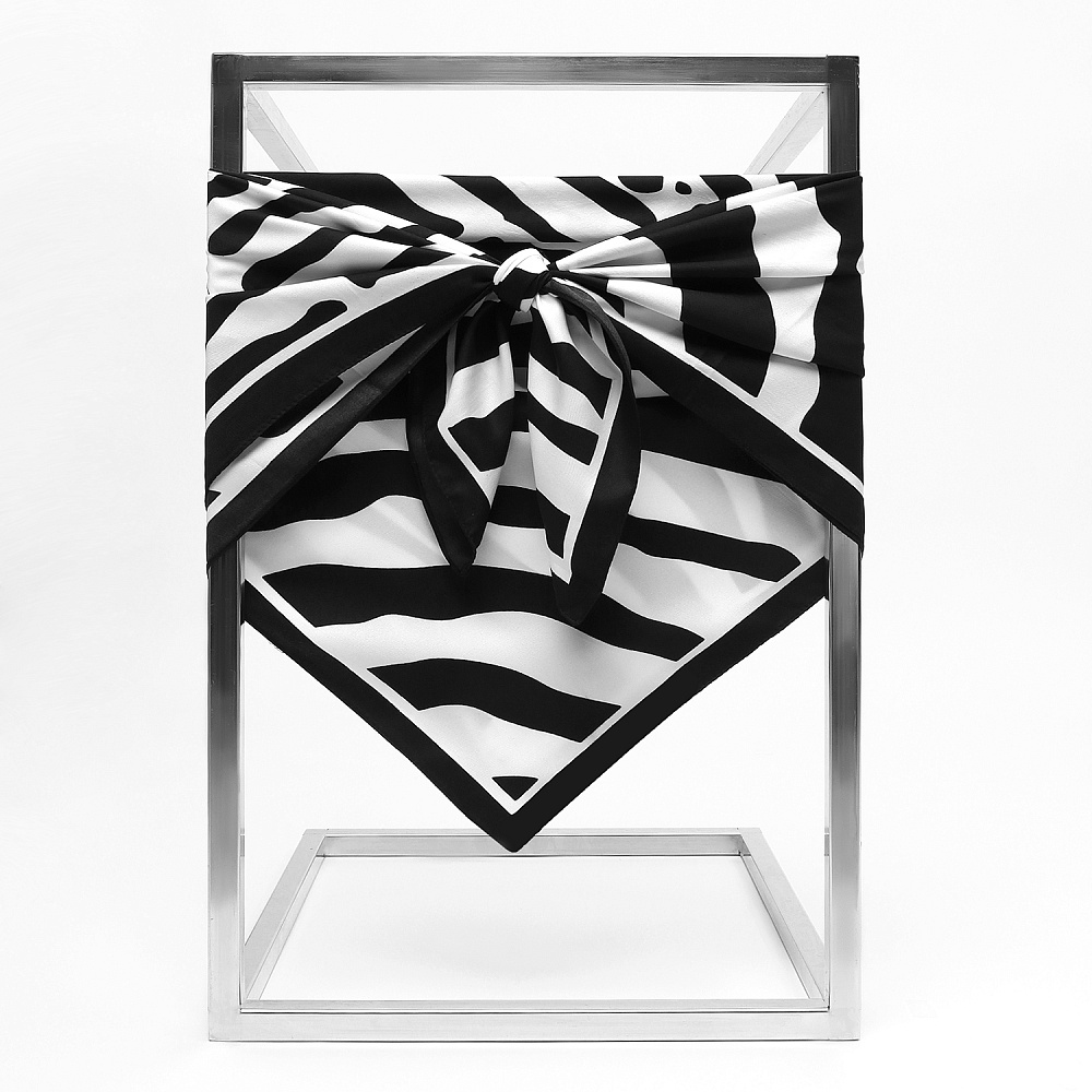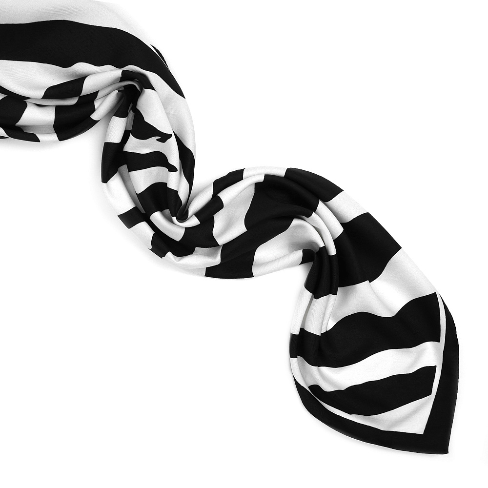 Классический женский платок итальянского бренда FABRETTI из искусственного шелка с монохромным узором под шкуру зебры.Анималистичные принты не выходят из моды, элегантные «зебровые» полоски хорошо подходят для современного гардероба, «смягчая» формальный образ и добавляя дерзкие нотки базовым повседневным вещам.Легкий искусственный шелк, с его гладкостью и блеском, отлично сочетается как с натуральными, так и искусственными материалами, особенно гладких и матовых фактур.Размер 85*85 см.