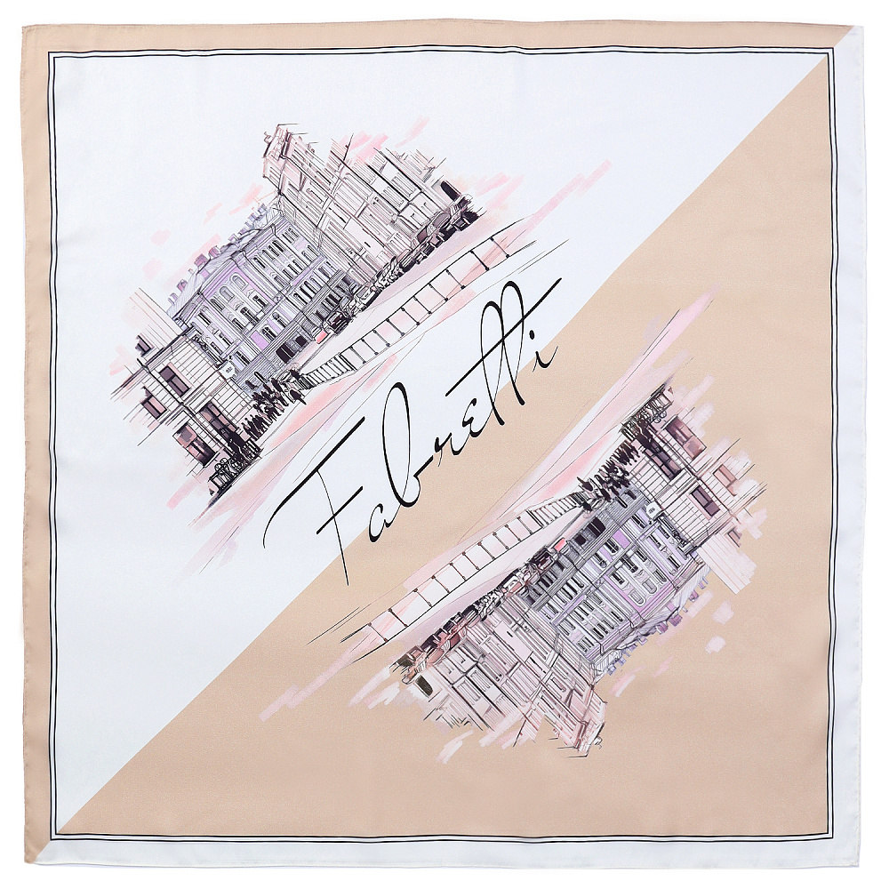 Стильный женский платок итальянского бренда FABRETTI из искусственного шелка в бежевых тонах с современным городским пейзажем смотрится легко и необычно. Эта модель сделает образ более мягким, а сложные детали рисунка позволят создать нужный акцент.Легкий искусственный шелк, с его гладкостью и блеском, отлично сочетается с «контрастными» матовыми фактурами – хлопком, льном, замшей. Этот платок подойдет не только для ношения на шее, им можно украсить волосы или сумку.Размер 70*70 см.
