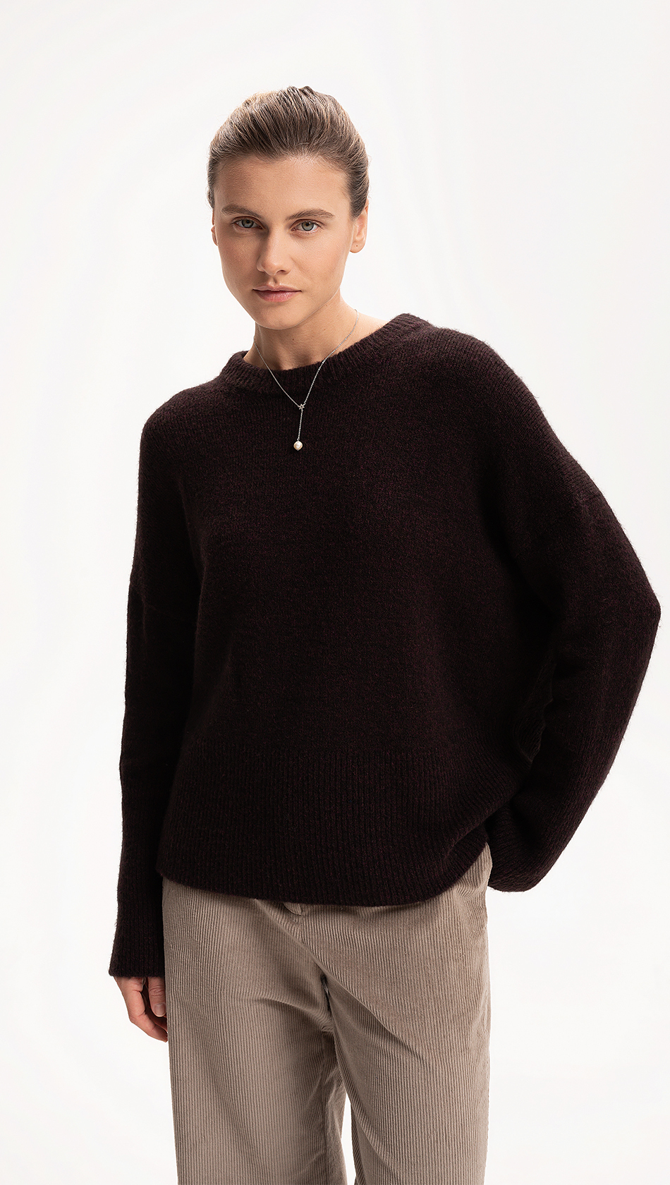 Стильный пуловер, в трендовом оттенке «рубиновый краплак», объемного прямого силуэта с прямыми рукавами, высокими манжетами и эластичным низом, изготовлен из премиальной итальянской пряжи.Мохер в составе пряжи обеспечивает пуловеру благородный блеск и воздушную текстуру, а натуральная шерсть обеспечивает традиционное тепло. Добавление акрила добавляет изделию еще одно немаловажное качество – износостойкость и долговечность.