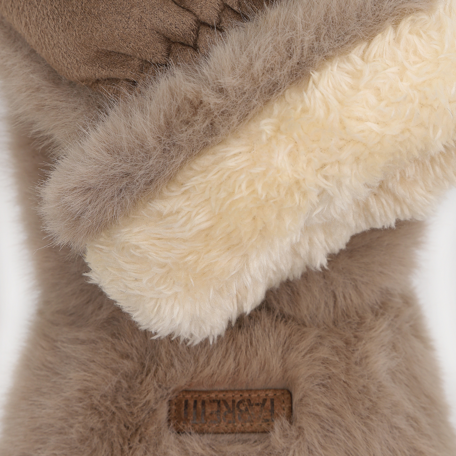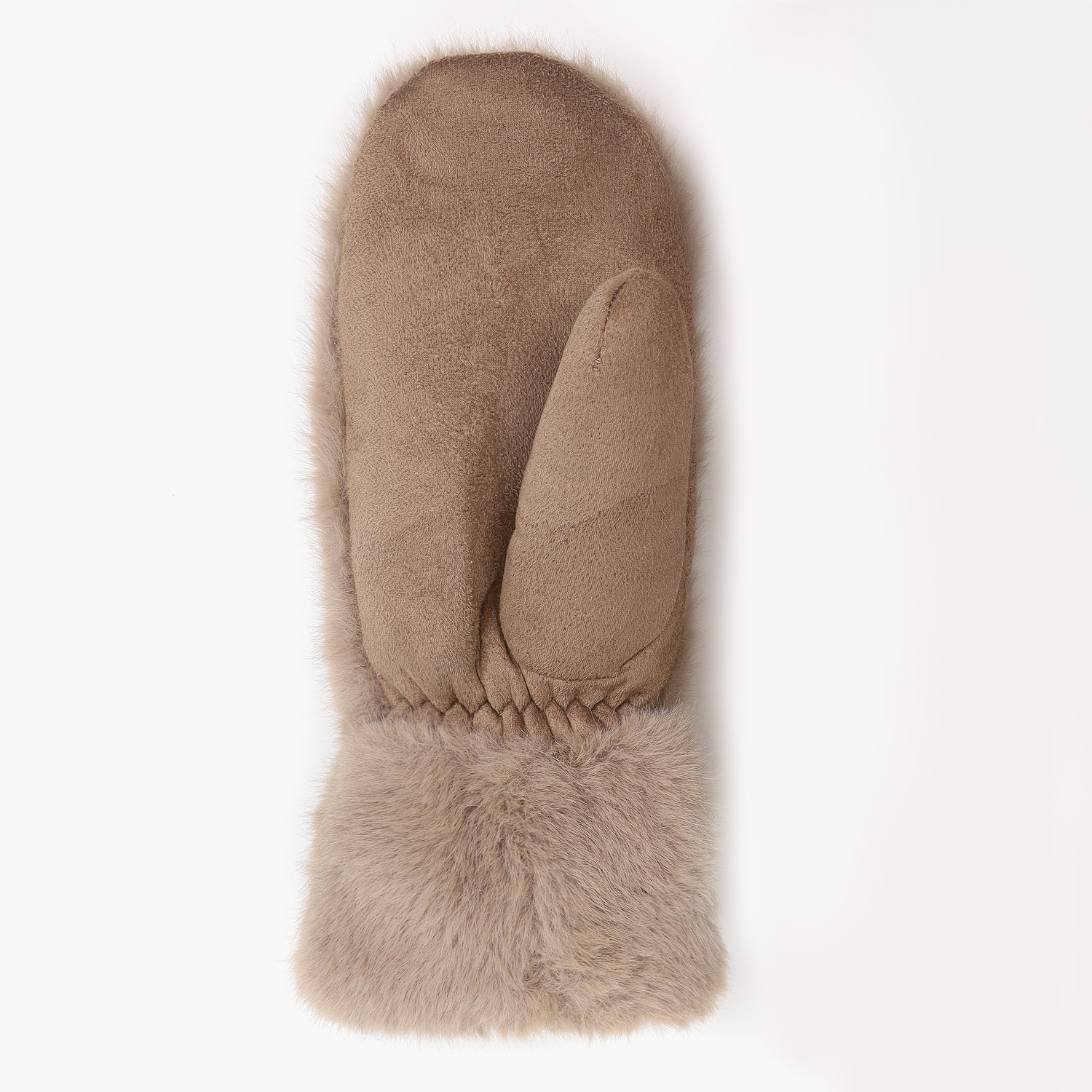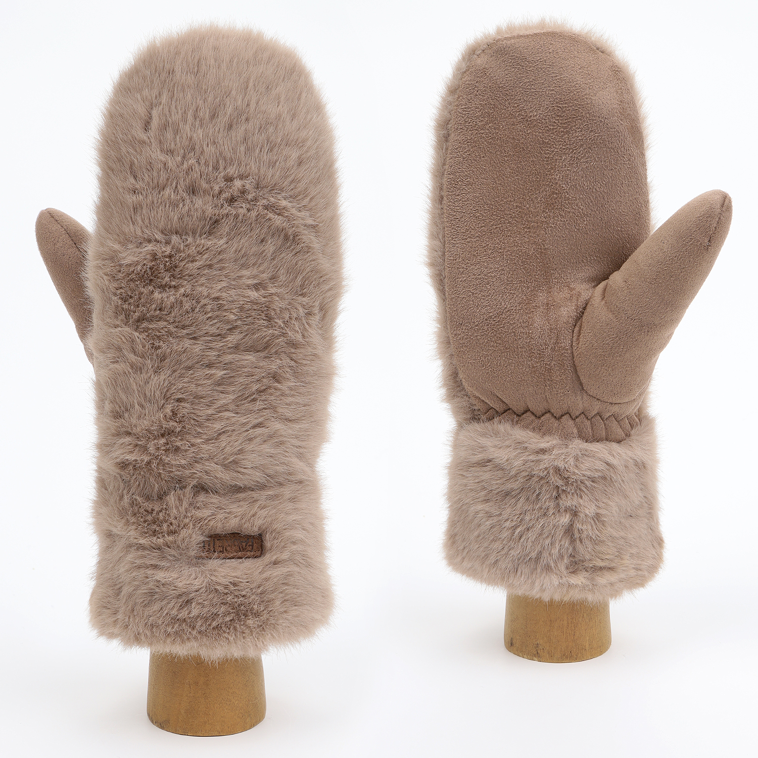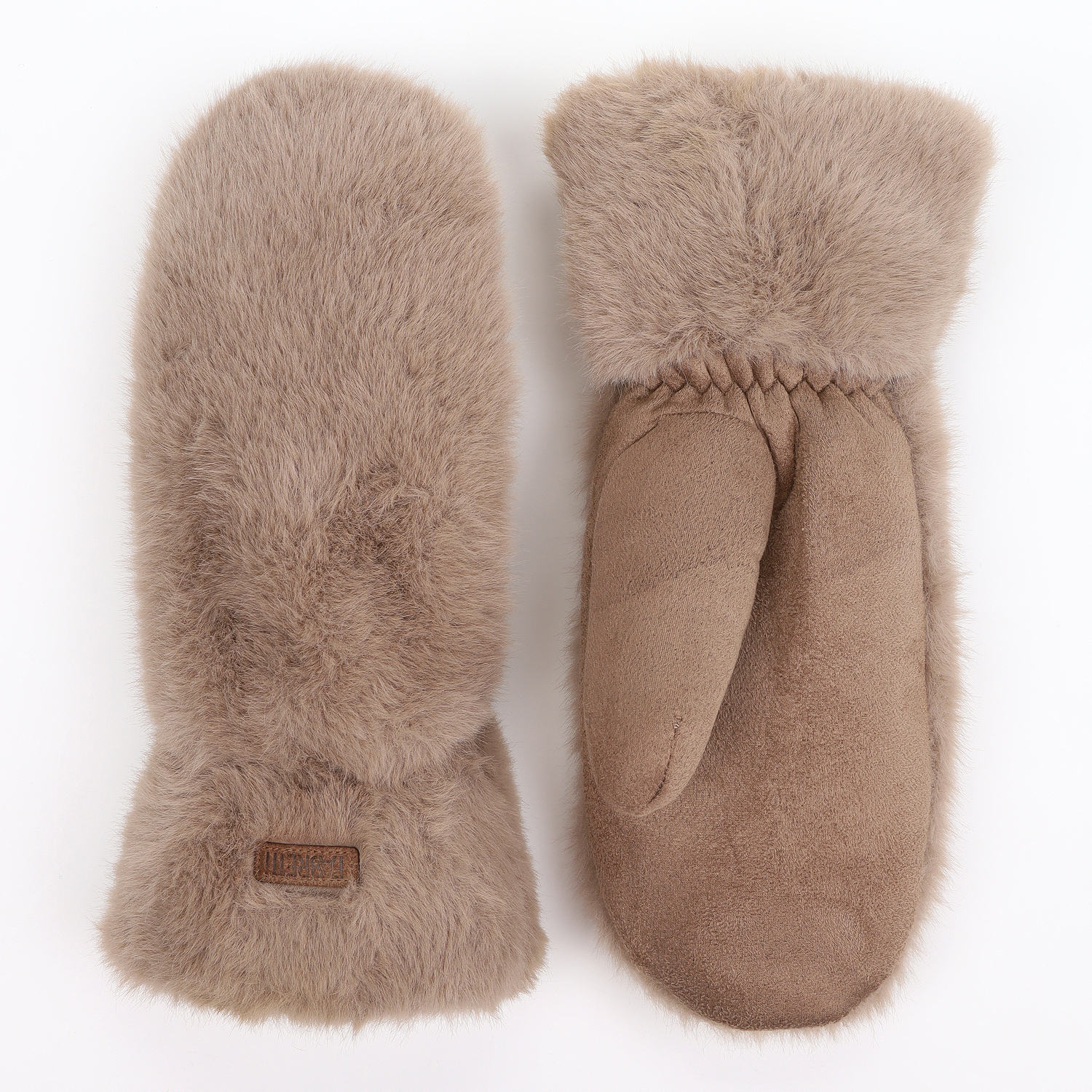 Оригинальные комбинированные рукавицы итальянского бренда FABRETTI сочетают искусственную замшу нежной фактуры на тыльной стороне и экомех кролика - на лицевой. Внутренняя часть утеплена подкладкой из искусственного меха.  На лицевой стороне лаконичный декор – пришивной кожаный логотип.