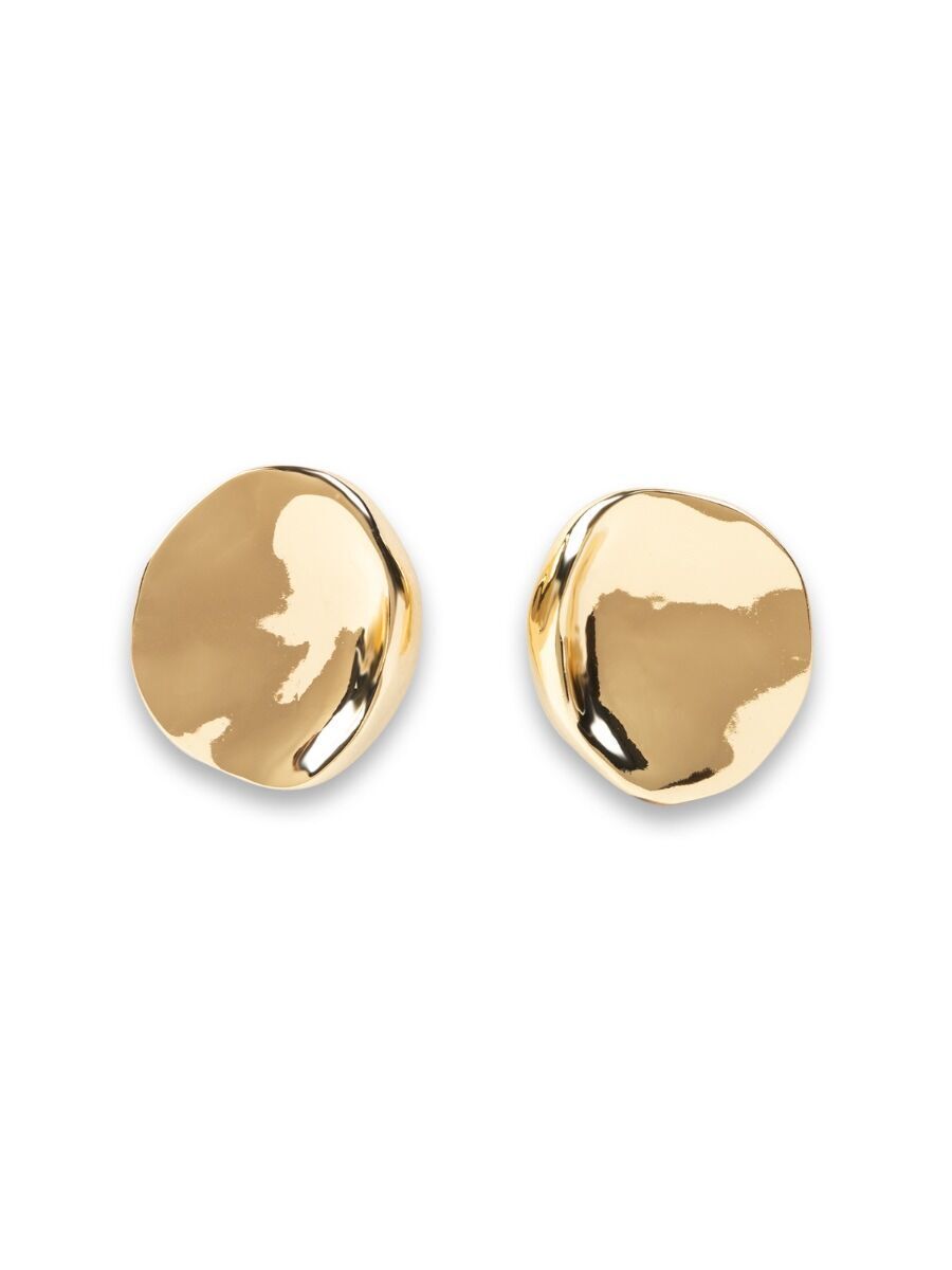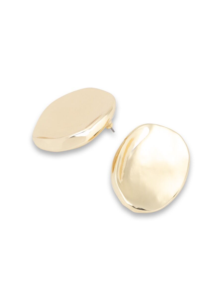 Стильные крупные серьги оригинальной круглой формы выполнены из глянцевого металла золотистого цвета. Гармонично будут смотреться как с классическим, так и со свободным стилем. Серьги подходят как для повседневной носки, так и для посещения светского мероприятия. Застежка - пусет. Могут комплектоваться с различными ожерельями коллекции.
