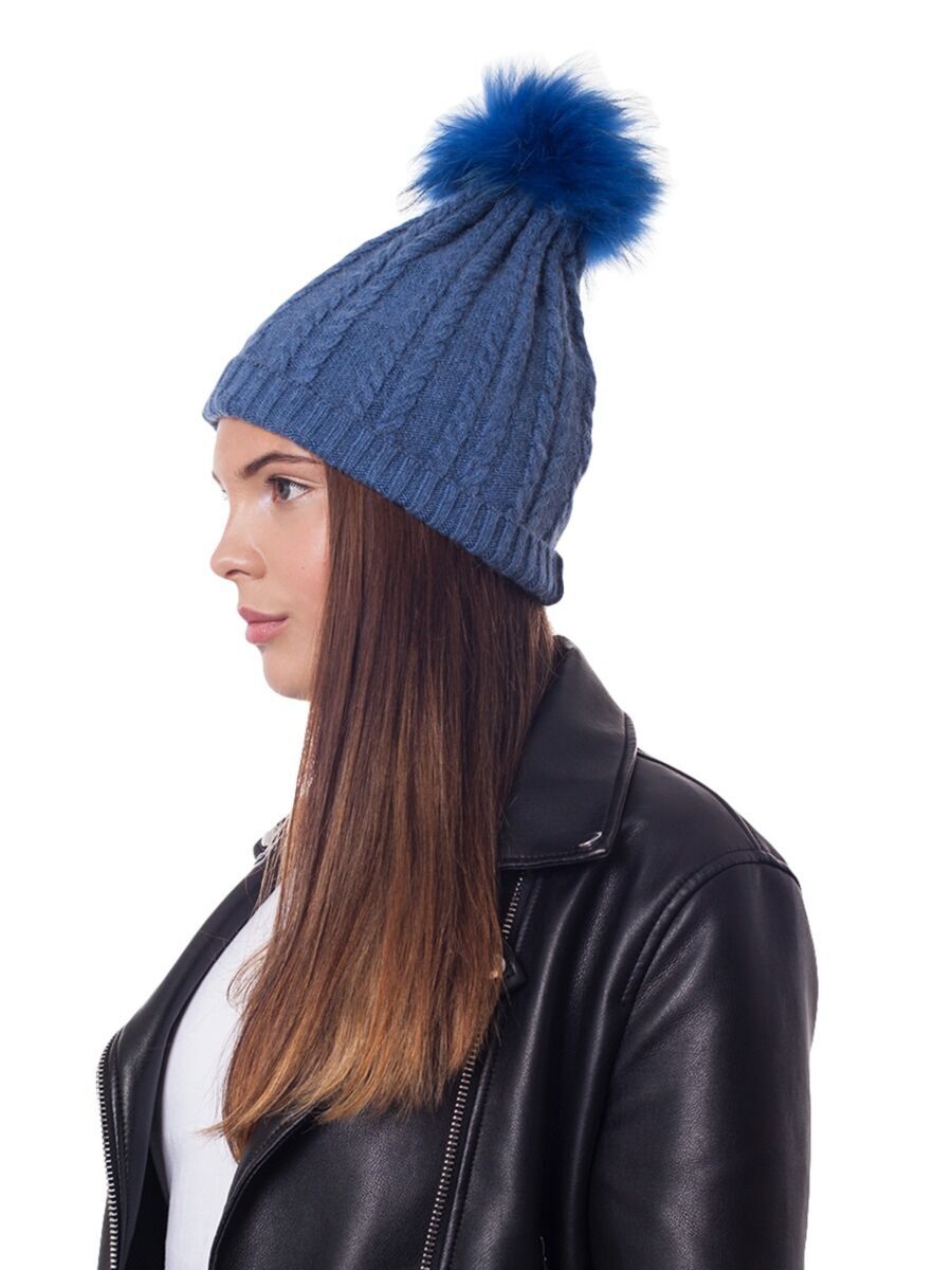 Трендовая шапка - чулок ,с пухом кролика в составе и с помпоном из натурального меха, на резинке. Рисунок - коса. Отличный аксессуар защитит в непогоду и подарит ощущение теплоты.