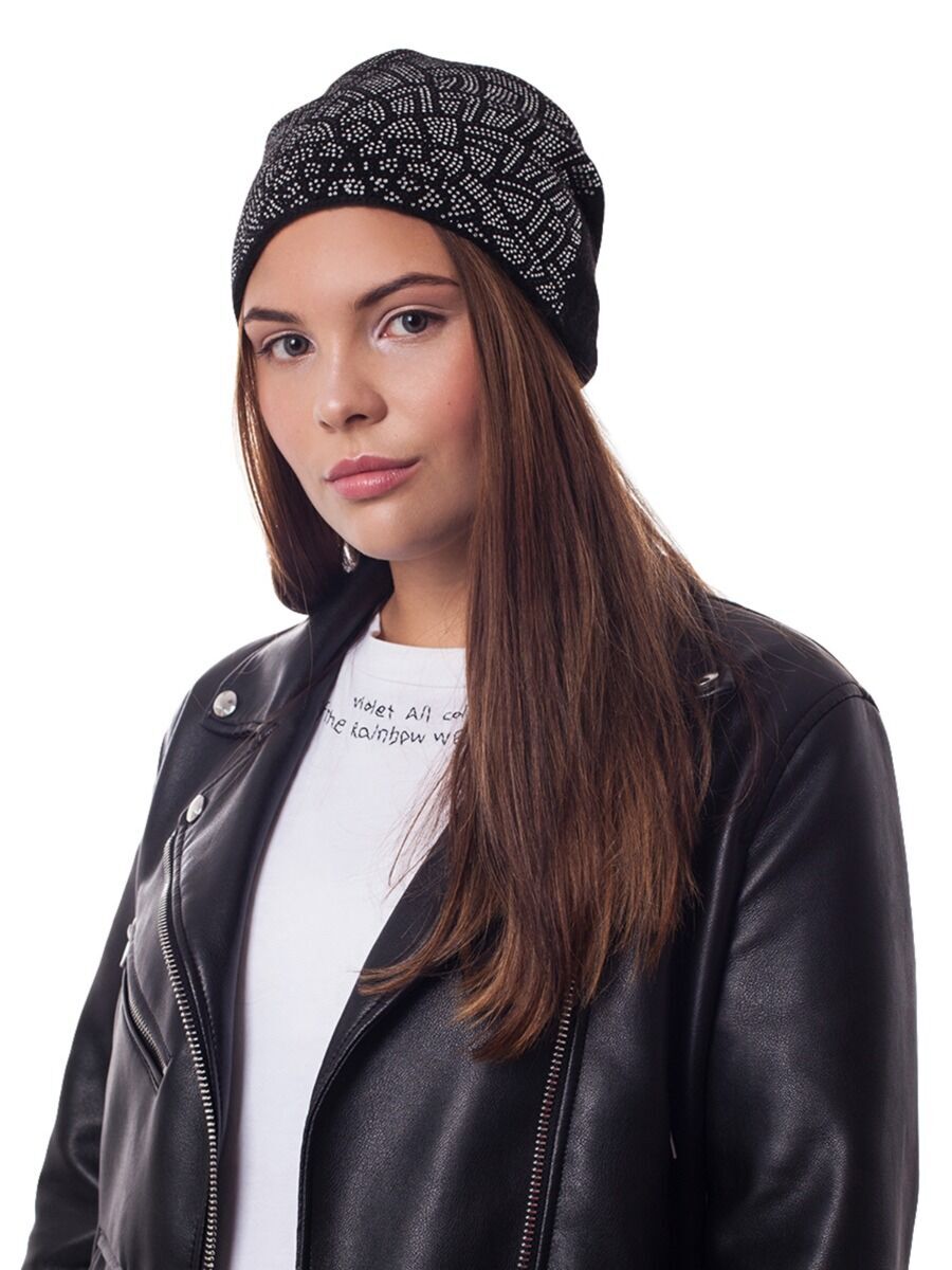 Шапка бини с термопринтом стразами все также остается на пике популярности и в этом сезоне. Однотонный головной убор благодаря декоративным элементам из лаконичной классики превращается в оригинальный женственный стиль. Плотная посадка.