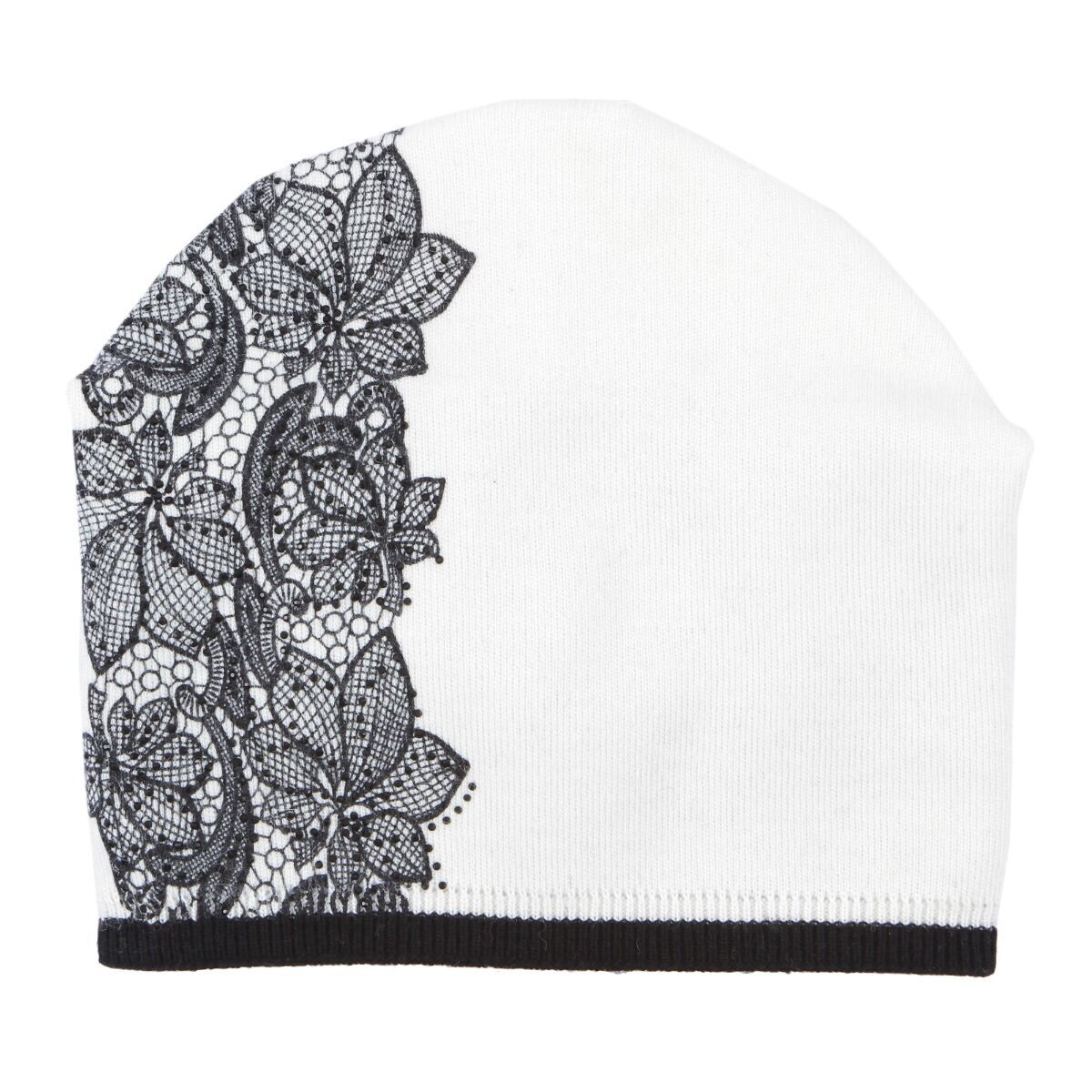 Шапочка бини с кружевным термопринтом все также остается на пике популярности и в этом сезоне. Однотонный головной убор благодаря декоративным элементам из лаконичной классики превращается в оригинальный женственный стиль. Плотная посадка.