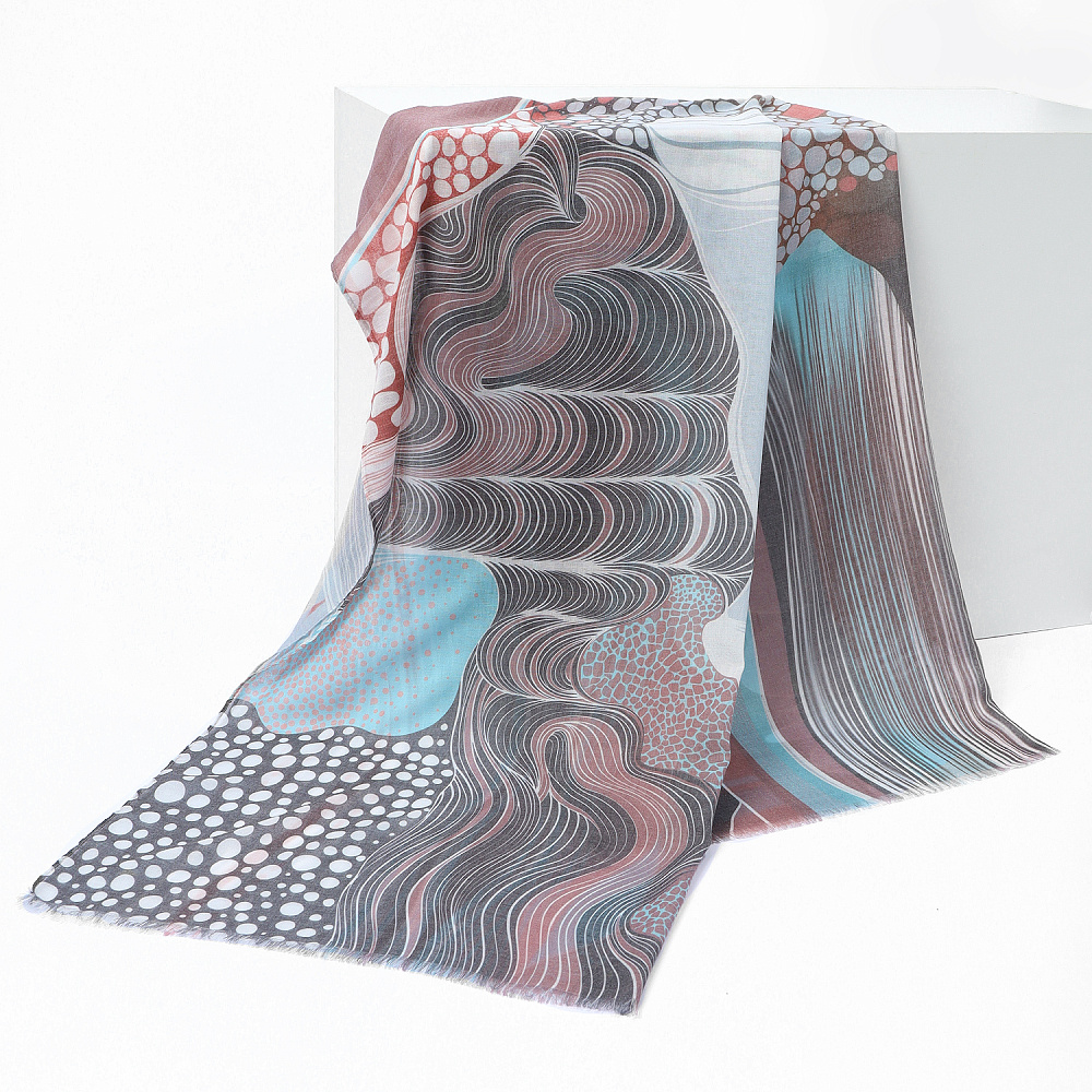 Легкий женский шарф итальянского бренда FABRETTI с невероятным узором из волн, линий, гороха и камней в природных красных и бежевых тонах идеально подходит для теплого сезона.Шарф выполнен из легкого смесового материала, в основе легкая вискоза, усиленная полиэстером. С таким составом ткань не деформируется и не мнется при носке, не выгорает на солнце и хорошо переносит чистку. Материал приятен на ощупь, красиво драпируется и идеально подходит на любую погоду.Размер 90*180 см.