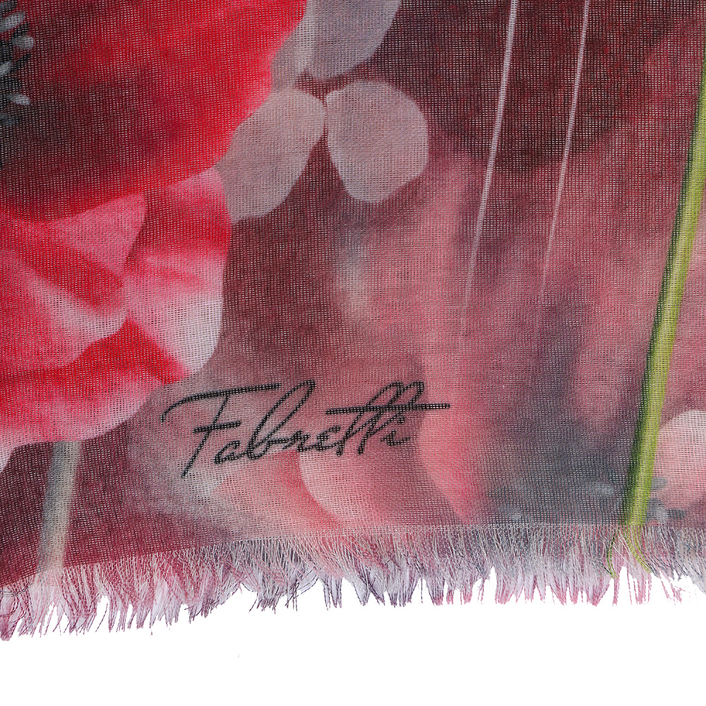 Яркий женский шарф итальянского бренда FABRETTI - прекрасный аксессуар для теплой солнечной погоды. Шарф украшен эффектным рисунком в виде цветов мака в нижней половине и плавно переходит в однотонный светлый верх.Шарф выполнен из легкого смесового материала, в основе которого нежное бамбуковое волокно, усиленное полиэстером. С таким составом ткань не деформируется и не мнется при носке, не выгорает на солнце и хорошо переносит чистку. Шелковистый материал приятен на ощупь, красиво драпируется и идеально подходит на жаркую погоду.Размер 90*180 см.