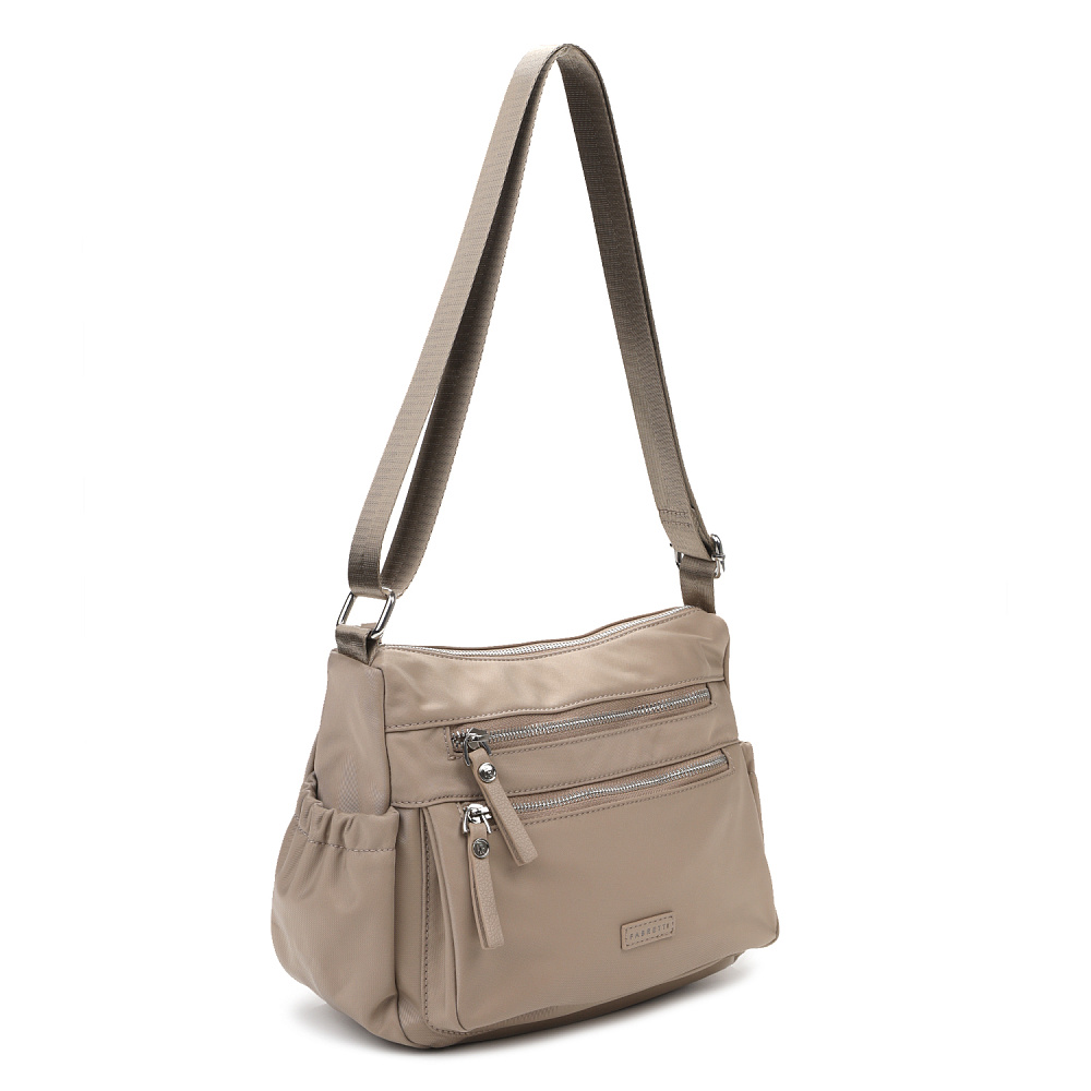 Женская сумка кросс-боди из коллекции итальянского бренда FABRETTI в элегантном бежевом оттенке с продуманным функциональным дизайном.Модель имеет одно отделение, закрывающееся на металлическую молнию. Внутри два открытых кармана и один на молнии. На лицевой стороне два кармана на молнии, на тыльной – карман быстрого доступа на молнии. По бокам два открытых кармана для воды или мелочей с вшитой резинкой.Поводки на молниях и пришивной логотип выполнены из экокожи в тон сумки.Эксклюзивная плотная гладкая ткань с деликатным сатиновым блеском имеет водоотталкивающие свойства.У модели регулируемый текстильный плечевой ремень, длина 135см.Дно усилено вставкой из экокожи. Цвет фурнитуры – серебро.Эта сумка станет стильным и продуманным дополнением для городского образа или удобным аксессуаром в поездке.