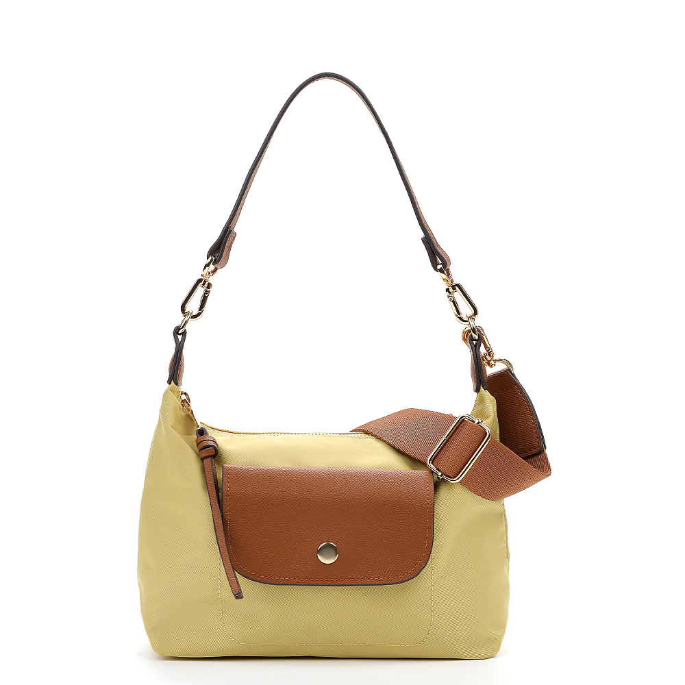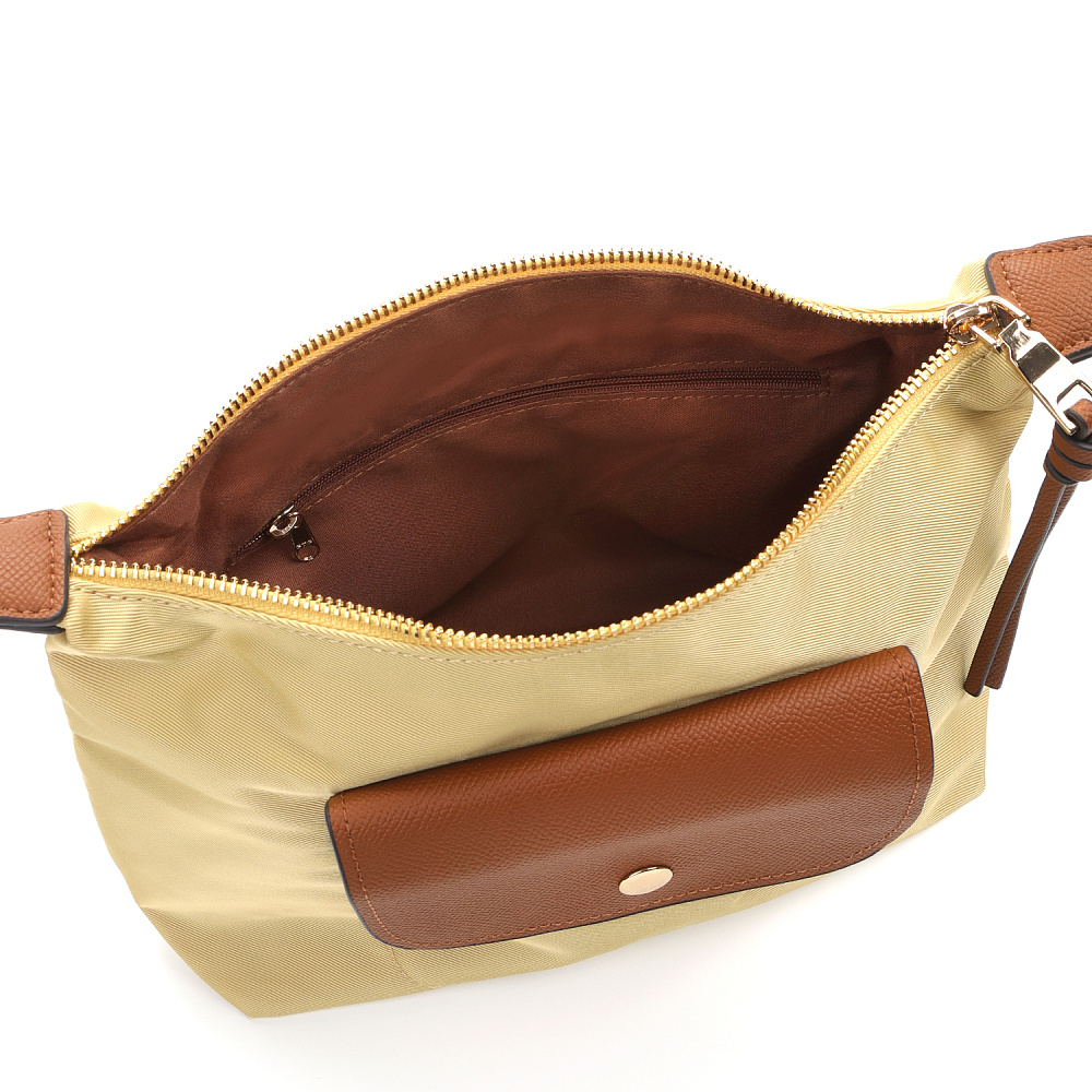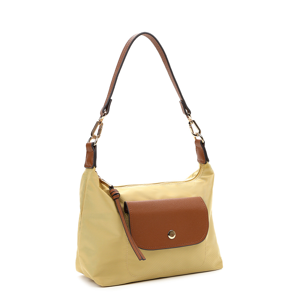 Элегантная женская сумка кросс-боди из коллекции итальянского бренда FABRETTI в трендовом светло-желтом оттенке «Акация». Эта миниатюрная модель с продуманным и функциональным дизайном отвечают актуальным трендам Нью-Йоркской Недели Моды.Основное отделение закрывается на молнию. У сумки одно отделение с внутренним карманом на молнии. На лицевой стороне небольшой врезной карман, закрывающийся клапаном с кнопкой. На тыльной стороне карман быстрого доступа на молнии.Сумка дополнена двумя видами съемных ручек – короткой ручкой из экокожи и регулируемым текстильным плечевым ремнем.Лаконичный декор модели – клапан на кармане, поводки на молниях и ручка - выполнен из коричневой экокожи с тиснением «сафьяно». Эксклюзивная плотная ткань с характерным рисунком переплетения нитей имеет водоотталкивающие свойства.Цвет фурнитуры – золото. Длина ремня 120 см.