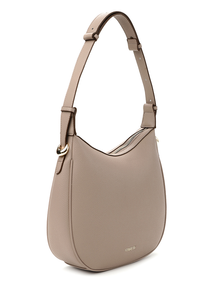 Стильная городская женская сумка сэддл итальянского бренда FABRETTI из экокожи с зернистой фактурой в бежевом оттенке. Сэддл – необычная модель с округлым низом, ее удобно носить на сгибе локтя и на плече. Широкая регулируемая ручка предусматривает оба варианта ношения.У сумки одно отделение на молнии, внутри два карманам – открытый и под молнией. На тыльной стороне карман быстрого доступа на молнии. Цвет фурнитуры – золото.Сэддл идеально выглядит как со спортивными вещами, добавляя им изысканности, так и со строгими образами, смягчая их и добавляя динамики.