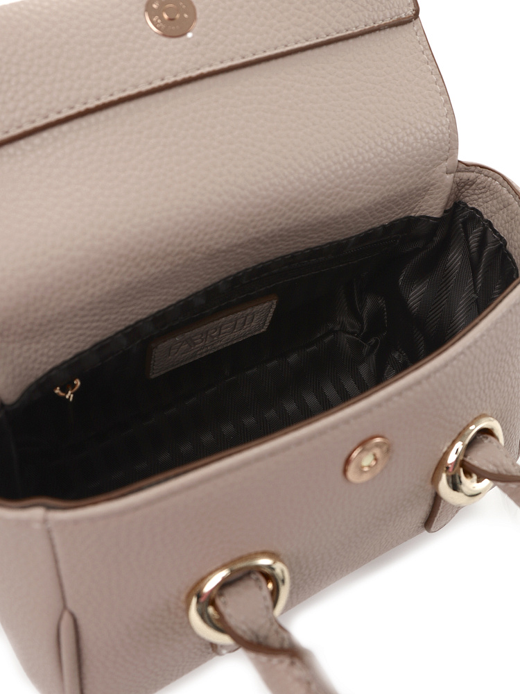 Миниатюрная женская сумка сэтчел итальянского бренда FABRETTI из нежной экокожи с мелкозернистой фактурой в теплом кофейно-бежевом оттенке со светло-коричневой отделкой швов. Классическая маленькая прямоугольная сумочка с клапаном на магнитной кнопке – идеальный городской аксессуар, вместительный, но компактный и хорошо сохраняющий геометрию формы.Внутри два кармана – на молнии и открытый. Короткие ручки скрепляются ремешком на кнопке.Сумка дополнена съемным регулируемым ремнем на карабинах, с пряжкой. Длина ок. 125 см. Цвет фурнитуры – золото.Эта модель может быть как главным аксессуаром как для будничного офисного образа с брючным костюмом или платьем-футляром, так и для выходного дня, с джинсами, футболкой и кедами. Съемный тонкий ремешок позволяет мгновенно трансформировать сумку из элегантного сэтчела на плече в строгий клатч для вечера или деловой встречи.