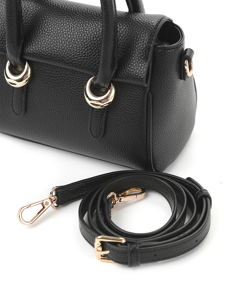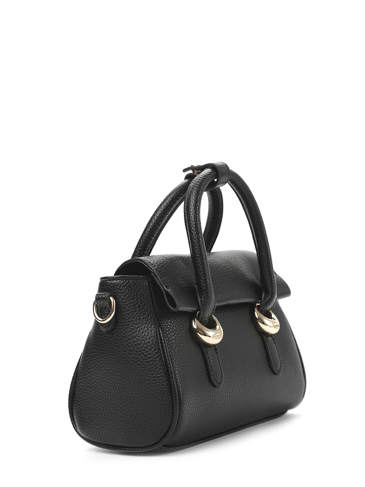 Миниатюрная женская сумка сэтчел итальянского бренда FABRETTI из нежной экокожи с мелкозернистой фактурой в классическом черном цвете. Классическая маленькая прямоугольная сумочка с клапаном на магнитной кнопке – идеальный городской аксессуар, вместительный, но компактный и хорошо сохраняющий геометрию формы.Внутри два кармана – на молнии и открытый. Короткие ручки скрепляются ремешком на кнопке.Сумка дополнена съемным регулируемым ремнем на карабинах, с пряжкой. Длина ок. 125 см. Цвет фурнитуры – золото.Эта модель может быть как главным аксессуаром как для будничного офисного образа с брючным костюмом или платьем-футляром, так и для выходного дня, с джинсами, футболкой и кедами. Съемный тонкий ремешок позволяет мгновенно трансформировать сумку из элегантного сэтчела на плече в строгий клатч для вечера или деловой встречи.