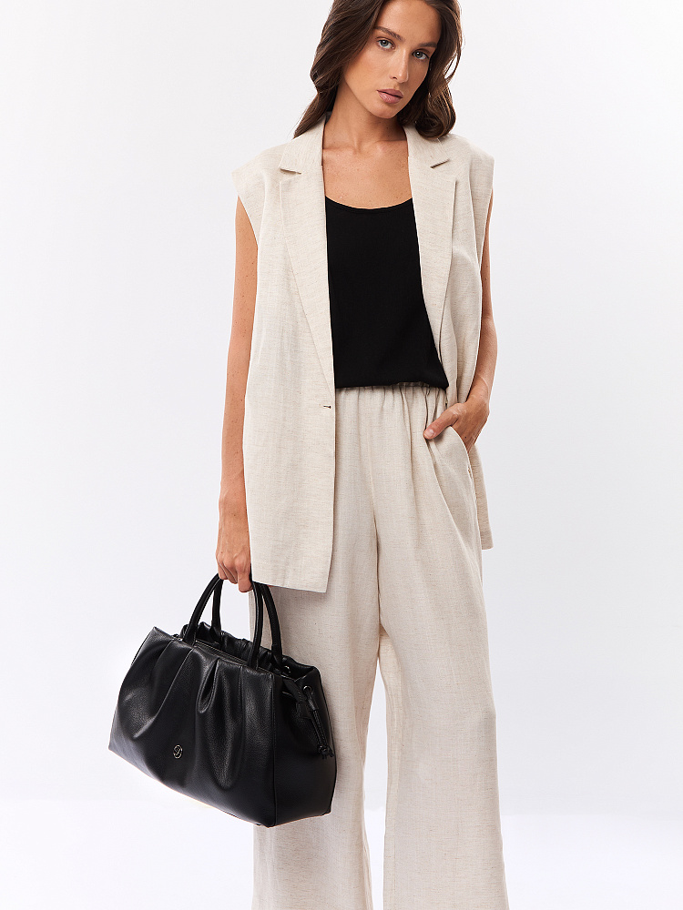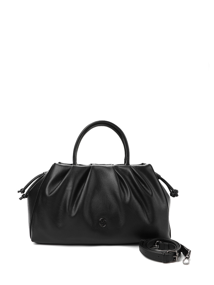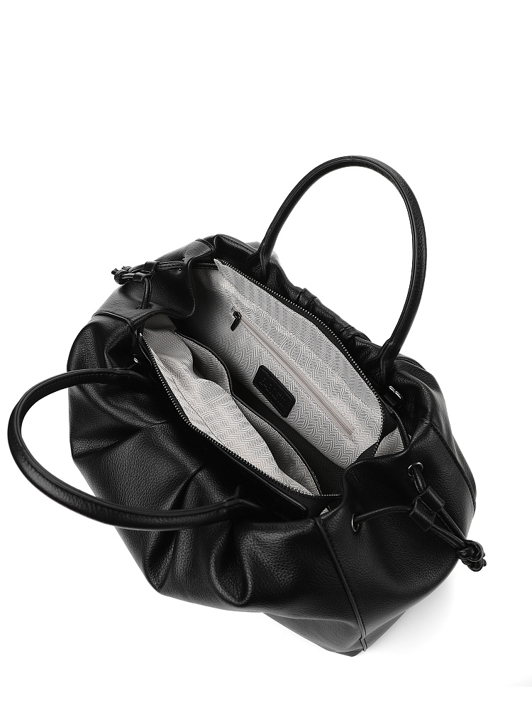 Вместительная женская сумка кросс-боди итальянского бренда FABRETTI из нежной мягкой экокожи с мелкозернистой фактурой в классическом черном цвете.Объемная модель с мягкими, плавными формами прекрасно сочетается с однотонным летним гардеробом и спокойным casual стилем. Она вмещает все необходимое для активной городской жизни.У сумки одно отделение на металлической молнии, внутри три кармана – два открытых и один на молнии. Верх модели оформлен крупными объемными складками, кожаный шнурок позволяет дополнительно утянуть его на манер сумки-кисета. На лицевой стороне изящная металлическая монограмма.Сумка дополнена съемным регулируемым ремнем на карабинах, с пряжкой. Длина ок. 125 см. Цвет фурнитуры – черный.