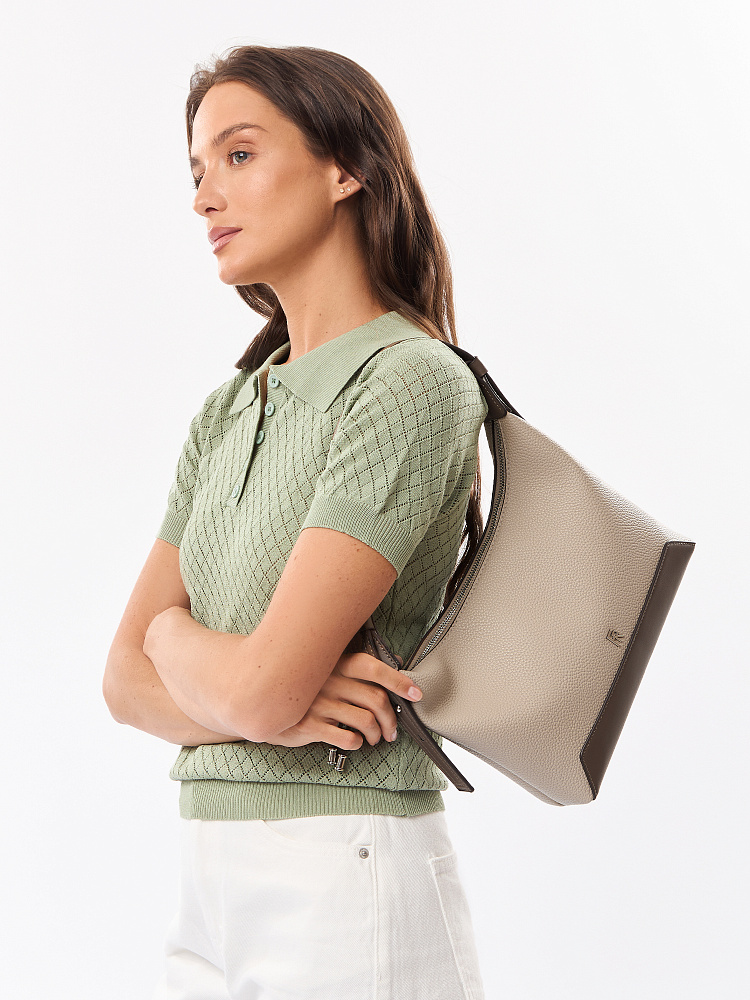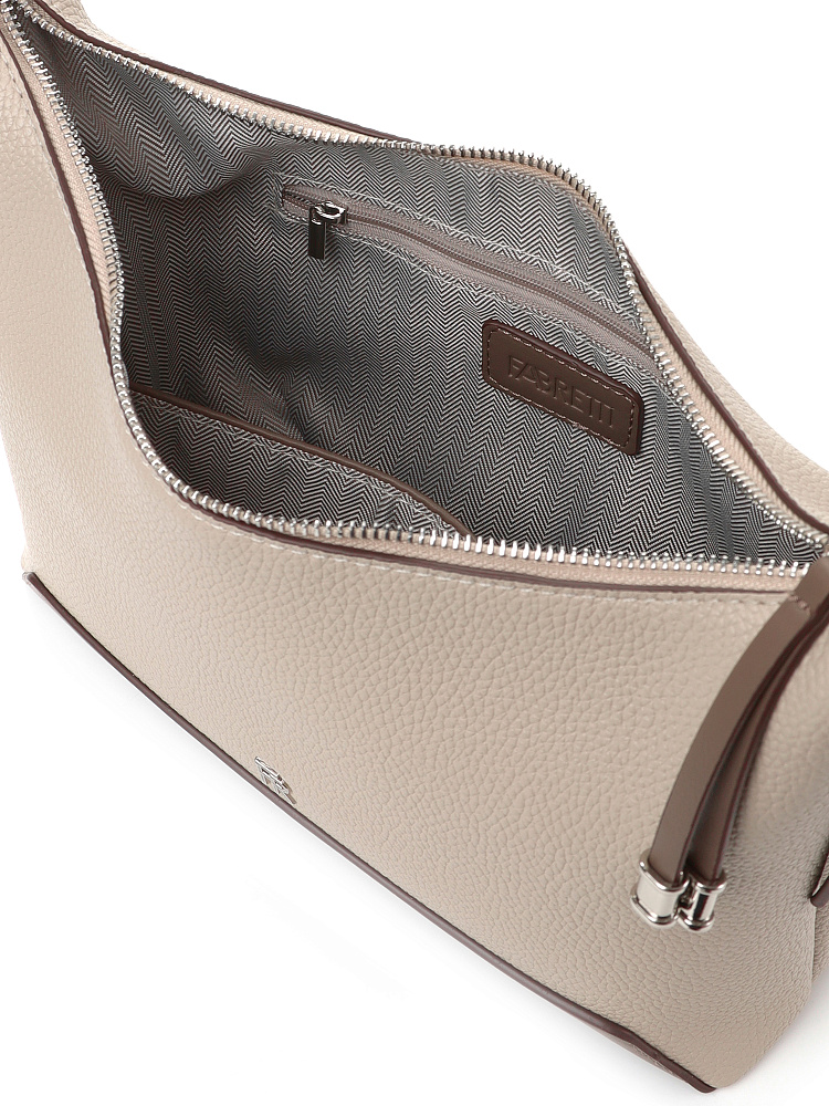 Удобная городская женская сумка хобо итальянского бренда FABRETTI выполнена из высококачественной экокожи с крупнозернистой фактурой. Серо-бежевая рельефная кожа дополнена отделкой из гладкой экокожи более темного серого оттенка «тауб». Это сочетание отлично гармонирует с повседневной одеждой на любой сезон. Сумка вмещает все необходимое, но не выглядит объемной. Ручка регулируется по высоте.У модели одно отделение на молнии, внутри открытый карман и на молнии, на тыльной стороне карман быстрого доступа, лицевая украшена фирменным металлическим логотипом. Цвет фурнитуры – серебро.
