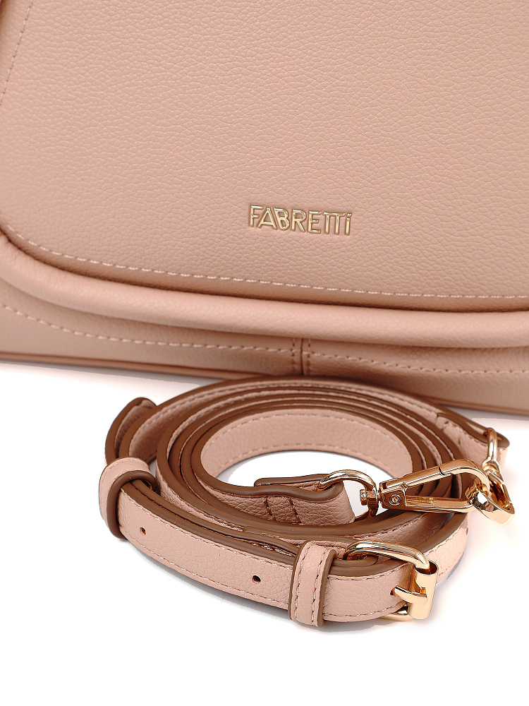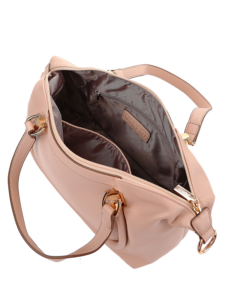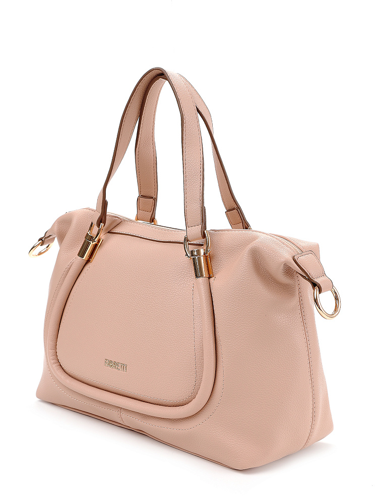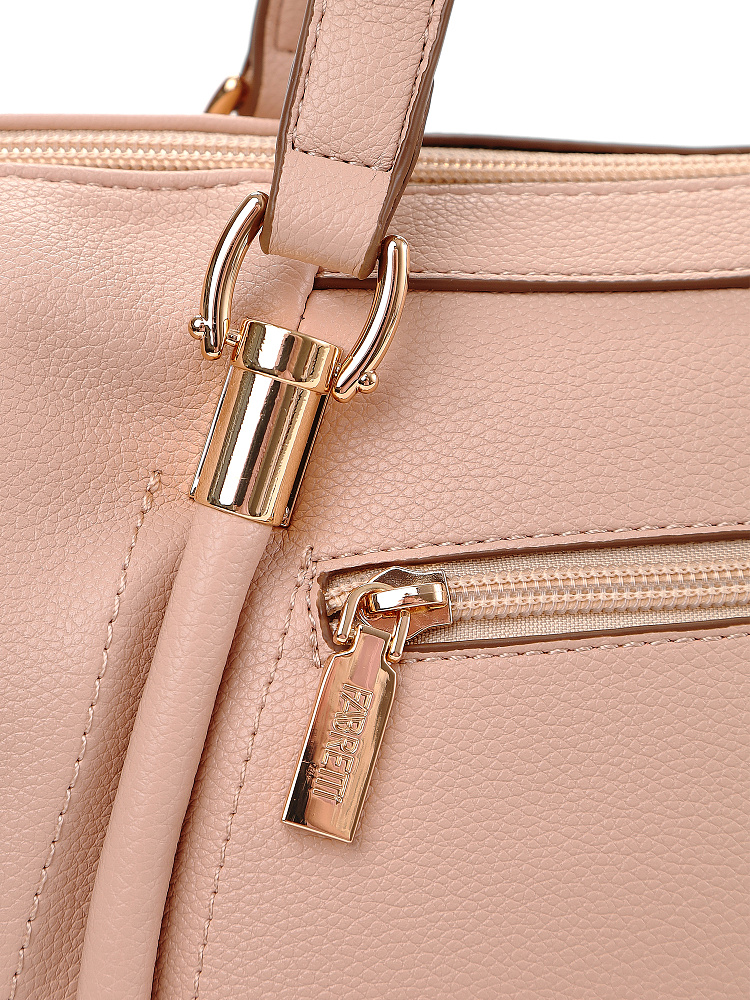 Женская сумка сэтчел итальянского бренда FABRETTI из мягкой и нежной темно-бежевой экокожи с зернистой фактурой - удобный повседневный аксессуар для города. Вместительное основное отделение имеет два внутренних кармана – открытый и на молнии. нА тыльной стороне сумки расположен карман быстрого доступа для мелочей. Короткие ручки с металлической фурнитурой из гальванизированного сплава позволяют носить сумку в руках или на сгибе локтя, а узкий съемный ремень на карабинах подходит для ношения на плече или кросс-боди. Основное отделение закрывается на молнию.Длина ремня ок. 120 см. Цвет фурнитуры – золото.