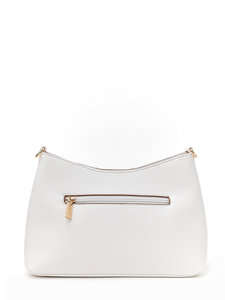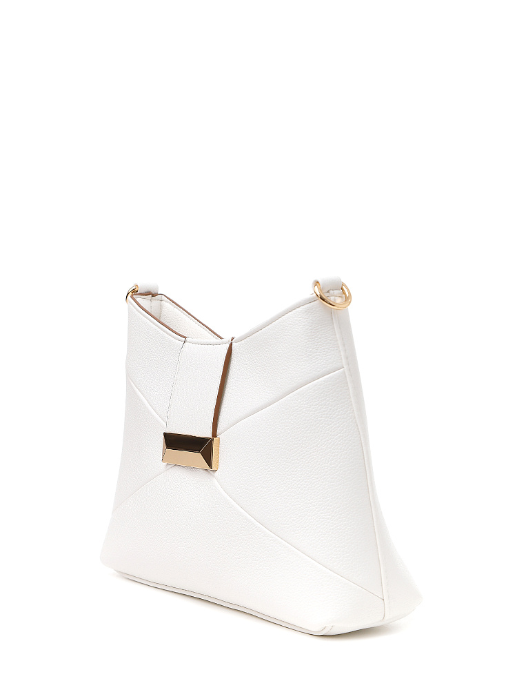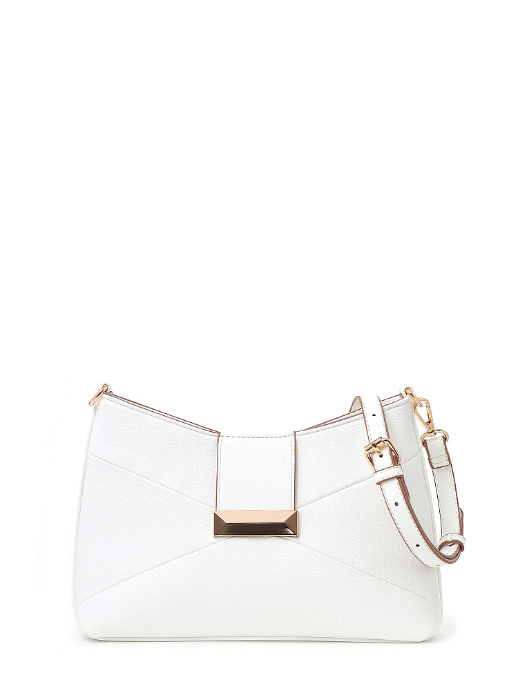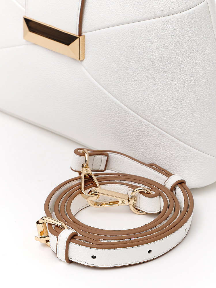 Эффектная женская сумка кросс-боди итальянского бренда FABRETTI из экокожи с мелкозернистым тиснением белого цвета. Интересный вариант для современного образа; отлично сочетается с однотонной одеждой классического стиля и кэжуал.У сумки прямоугольный силуэт с небольшим изгибом в центре, строгую геометрию подчеркивают диагональные швы и декоративный хлястик с крупной металлической пряжкой на лицевой стороне. На тыльной стороне карман быстрого доступа.Основное отделение закрывается молнией. Внутри небольшой карман на молнии и открытый карман.Узкий съемный плечевой ремень на карабинах регулируется по длине при помощи пряжки.Длина ремня ок. 135 см. Цвет фурнитуры – золото.