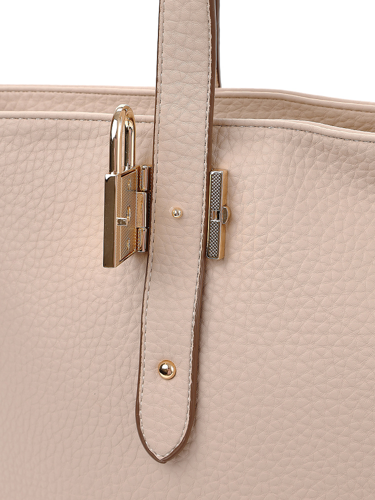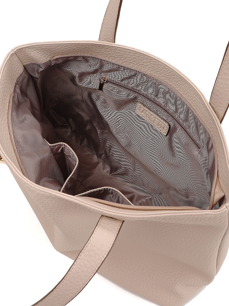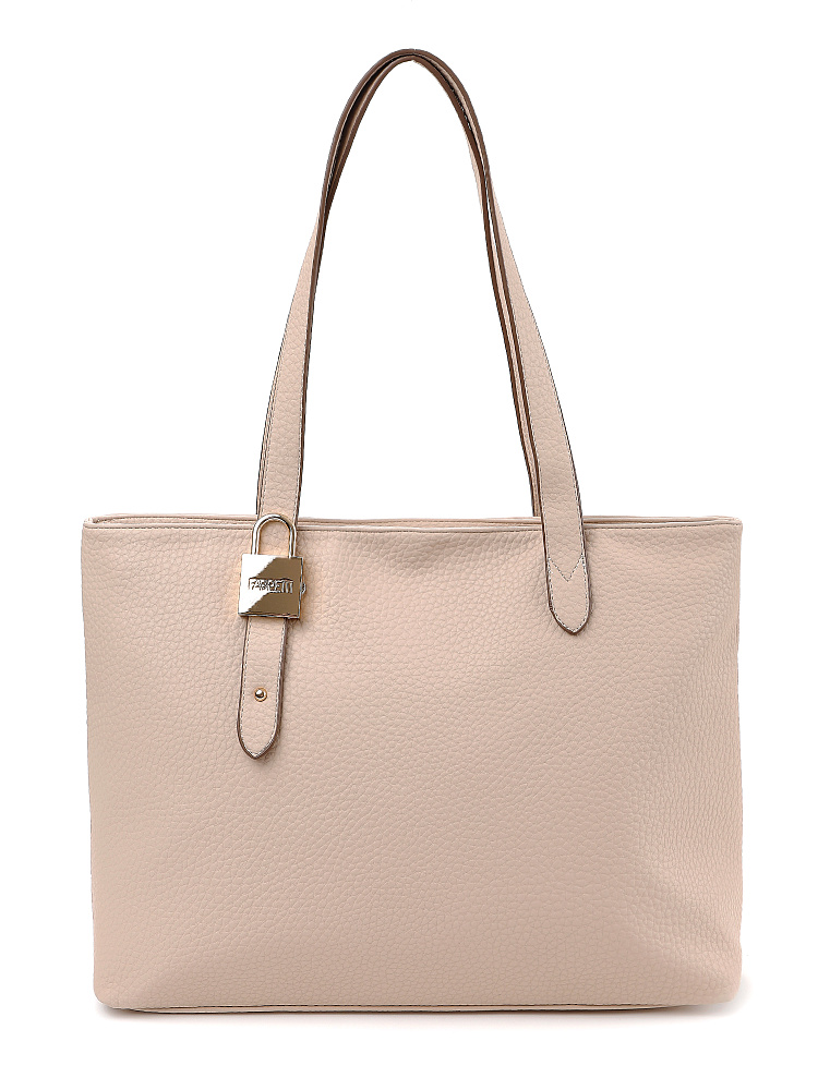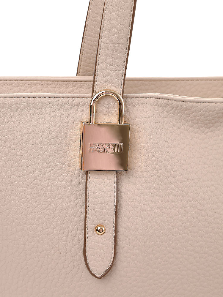 Удобная большая сумка шоппер молочно-бежевого цвета от итальянского бренда FABRETTI это одна из самых необходимых и вместительных моделей, которая хорошо подходит для активного городского уровня жизни.У сумки прямоугольный силуэт, но мягкая крупнозернистая экокожа делает его плавным и менее строгим. Основное отделение закрывается на молнию, внутри два открытых кармана и один на молнии. Карман быстрого доступа расположен на тыльной стороне сумки.У модели удобные длинные ручки для ношения на плече. На передней ручке интересный декор в виде металлического замочка. Дно усилено и дополнено металлическими ножками.Цвет фурнитуры – золото.
