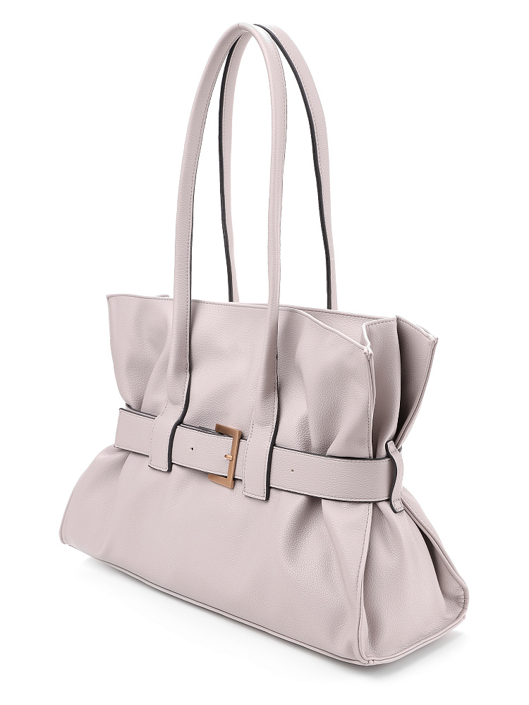 Необычная женская сумка сэтчел итальянского бренда FABRETTI из мягкой экокожи розовато-серого цвета с зернистой фактурой делает образ более оригинальным благодаря своей нестандартной форме. Декоративный ремень, проходящий по центру сумки, создает классическую форму сумки-кисета. Объем сумки легко регулируется пряжкой.Вместительное основное отделение имеет два внутренних кармана – открытый и на молнии. Длинные ручки позволяют носить сумку в руках или плече. Основное отделение закрывается на молнию.Цвет фурнитуры – матовое золото.