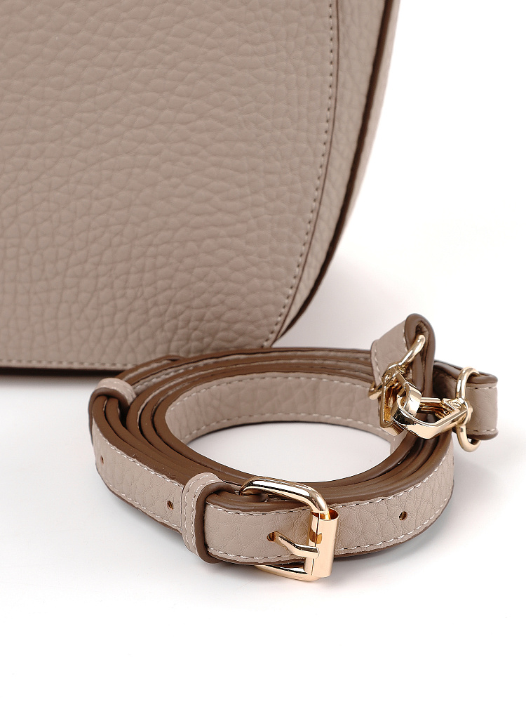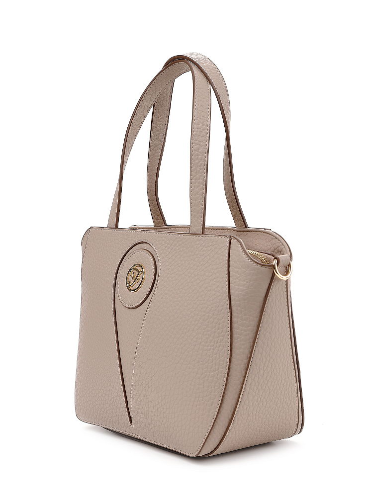 Женская сумка тоут итальянского бренда FABRETTI – классическая сумка-трапеция на длинных ручках, выполненная из нежной крупнозернистой экокожи «нюдового» бежевого оттенка.Основное отделение закрывается на металлическую молнию. Внутри открытый карман и на молнии, на тыльной стороне карман быстрого доступа. Лицевая сторона сумки украшена изящной металлической монограммой и каплевидным вырезом с отстрочкой – лаконично и элегантно.У сумки два вида ручек – короткие базовые и съемный плечевой ремень на карабинах.Длина ремня ок. 125 см. Цвет фурнитуры – золото.