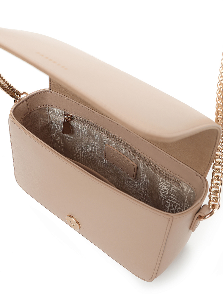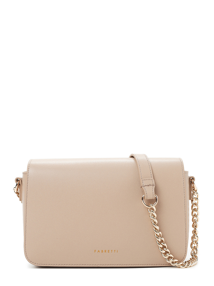 Небольшая женская сумка кросс-боди итальянского бренда FABRETTI из натуральной кожи с гладкой фактурой кальф нежного «нюдового» бежевого цвета. Лаконичный дизайн с минимумом декора и фурнитуры делает эту сумку универсальным аксессуаром под любой стиль.Сумка закрывается на клапан с магнитной кнопкой. Внутри отделения два кармана – открытый и на молнии.У сумки комбинированный плечевой ремень из золотистых цепочек и кожи.Длина ремня ок. 135 см. Цвет фурнитуры – золото.