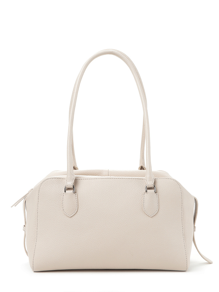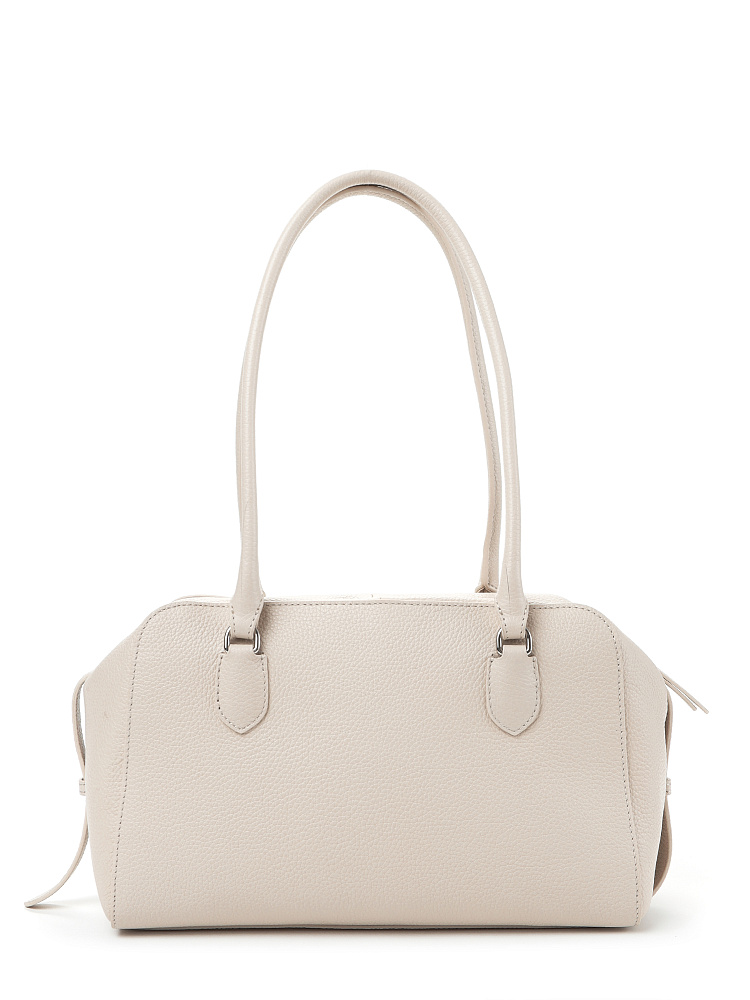 Удобная женская сумка боулер итальянского бренда FABRETTI – одна из самых комфортных моделей для города. Она достаточно вместительна, но не кажется громоздкой. Прямоугольная форма хорошо подходит к любому типу фигуры.Модель выполнена из натуральной кожи легкого светло-бежевого оттенка с зернистой фактурой. Основное отделение закрывается на металлическую молнию. Внутри расположены открытый карман и на молнии.У сумки короткие объемные ручки для ношения на плече. По бокам декор в виде кожаных ремешков. Цвет фурнитуры – серебро.