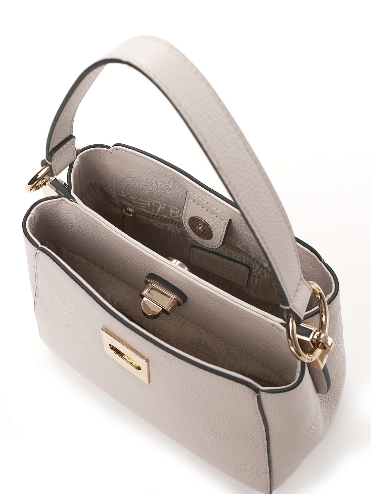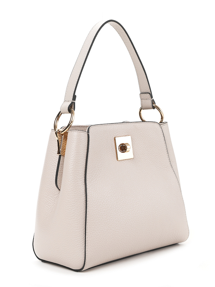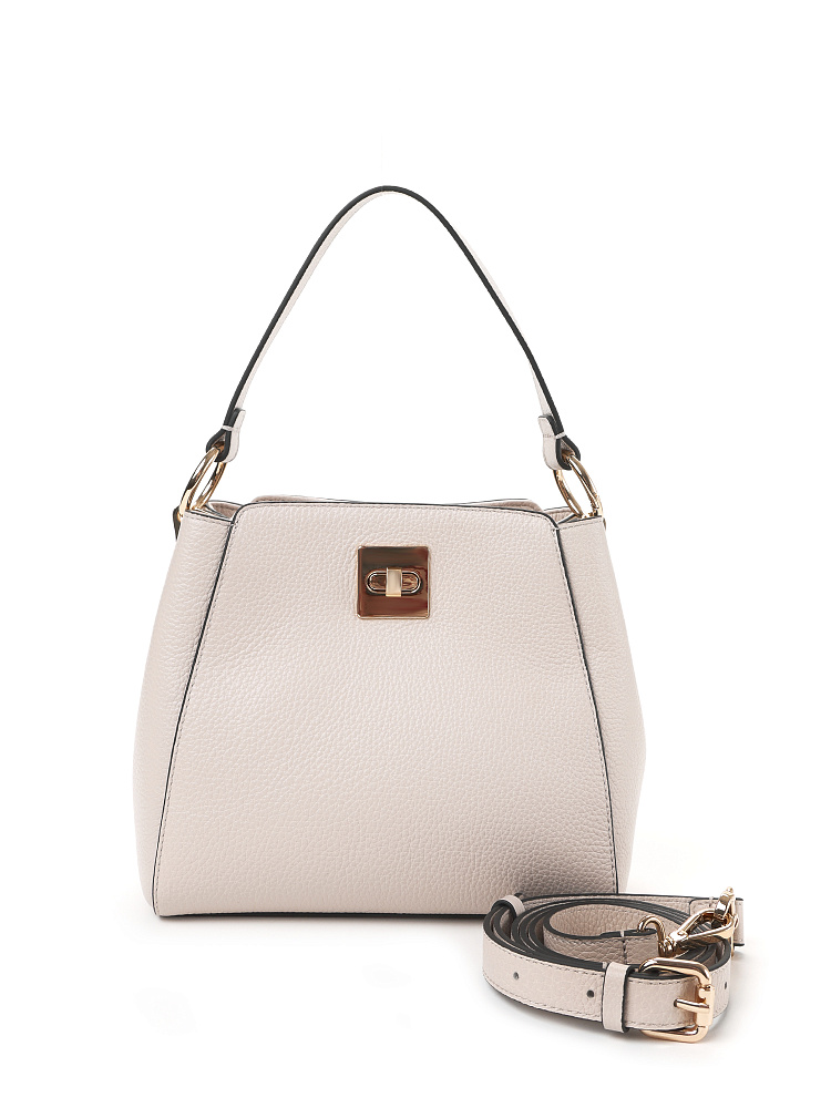 Небольшая женская сумка сэтчел итальянского бренда FABRETTI воплощает в тебе стиль «тихой роскоши» - аксессуар обладает продуманным функционалом и безупречным дизайном. Идеально сочетается с повседневным городским гардеробом в стилях smart- и business casual.Модель выполнена из высококачественной плотной кожи с зернистой фактурой, молочно-белый цвет контрастирует с черной окантовкой краев.У сумки два отделения – одно на поворотном замке, второе на магнитном. Внутри открытый карман и на молнии. Эта сумка дополнена двумя съемными ремнями – небольшой ручкой на кольцах-карабинах и плечевым ремнем на карабинах, которые регулируется пряжкой. Длина ремня ок 125см. Цвет фурнитуры – золото.