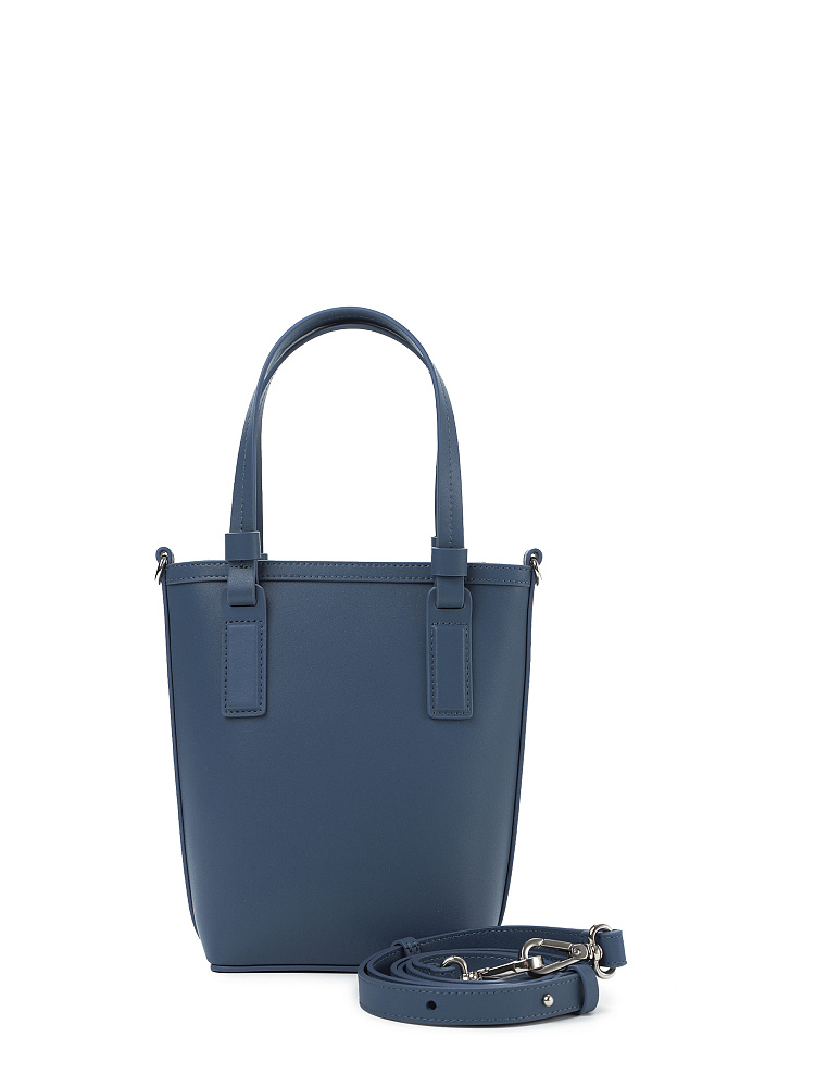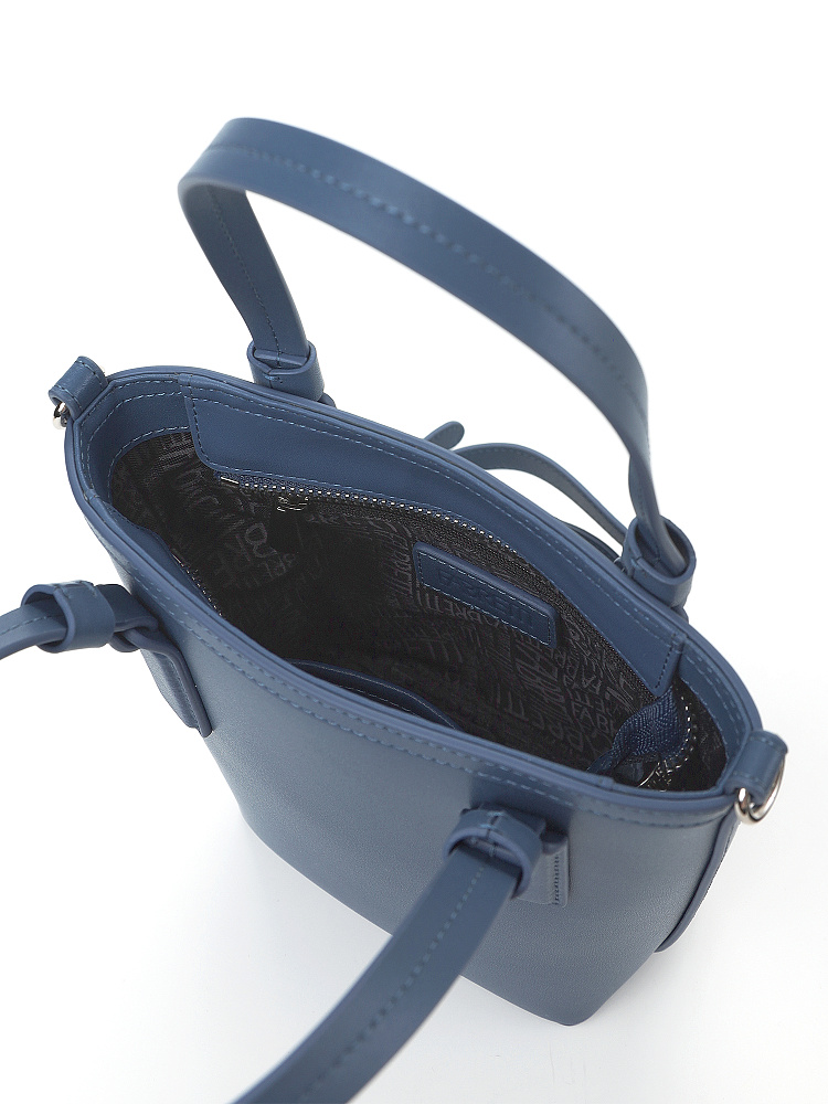 Трендовая женская сумка-ведро итальянского бренда FABRETTI из гладкой кожи кальф темного серо-голубого цвета. Необычная современная модель с жестким каркасом, которая хорошо сочетается с любым базовым кэжуал-гардеробом и визуально вытягивает силуэт.У модели одно отделение на молнии, внутри открытый карман и на молнии. Короткие плоские ручки удобны для ношения в руках, длинный ремешок на карабинах регулируется по длине. Лаконичный геометрический декор делает акцент на ручках и визуально удлиняет модель.Цвет фурнитуры – серебро.