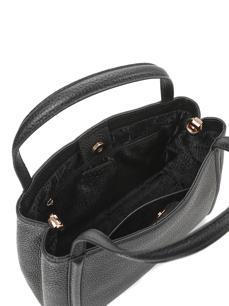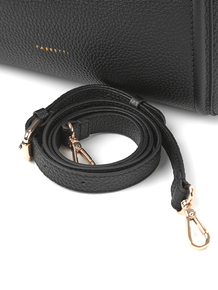 Классическая женская сумка тоут итальянского бренда FABRETTI – одна из самых удобных моделей для повседневного городского гардероба. Лаконичный силуэт-трапеция и минимум декора делают эту сумку универсальным аксессуаром под образы во многих стилях.Модель выполнена из высококачественной плотной кожи с зернистой фактурой в классическом черном цвете.Основное отделение закрывается на магнитный замок, внутри открытый карман и на молнии. На тыльной стороне карман быстрого доступа на молнии. У сумки короткие ручки и регулируемый съемный кожаный ремень на карабинах. Длина ремня ок. 115 см. Цвет фурнитуры – золото.