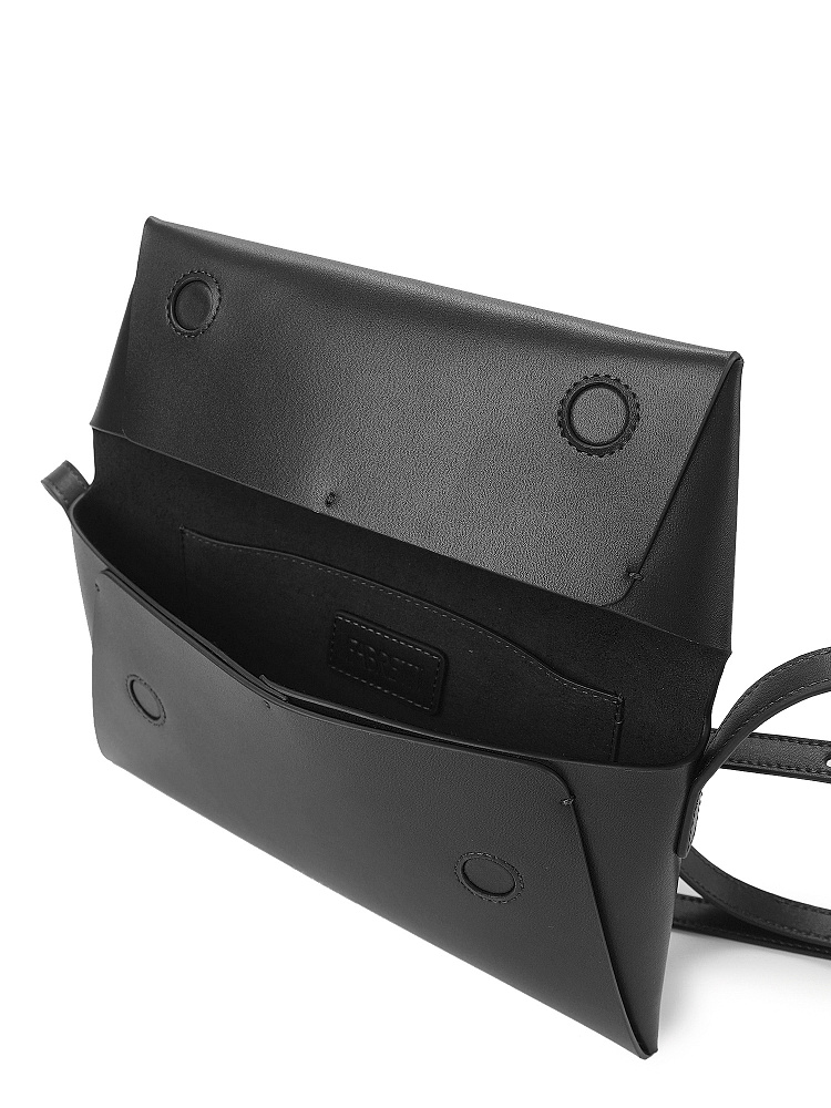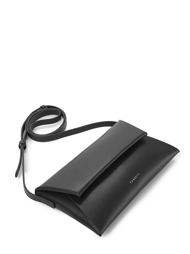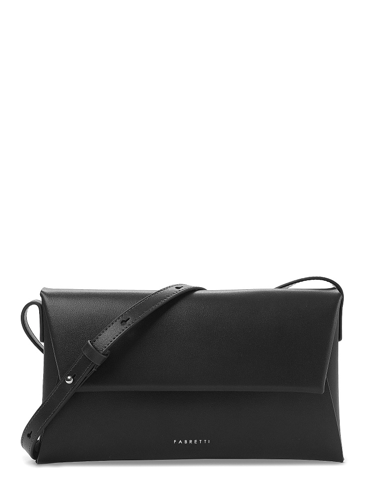Лаконичная женская сумка-конверт итальянского бренда FABRETTI из гладкой черной кожи кальф. За простыми формами скрыт сложный дизайн – сумка собрана без швов в виде классического делового конверта, и без лишнего декора и фурнитуры – только строгое тиснение с лого на лицевой стороне.Закрывается одним широким клапаном с двумя скрытыми магнитами. Внутри одно отделение с глубоким открытым карманом. Завершает дизайн тонкий ремешок кросс-боди, регулируемый по длине кнопкой. Длина ремня ок. 125 см. Цвет фурнитуры – серебро.