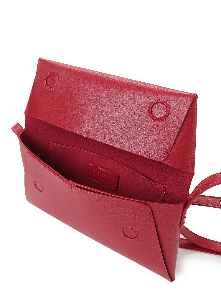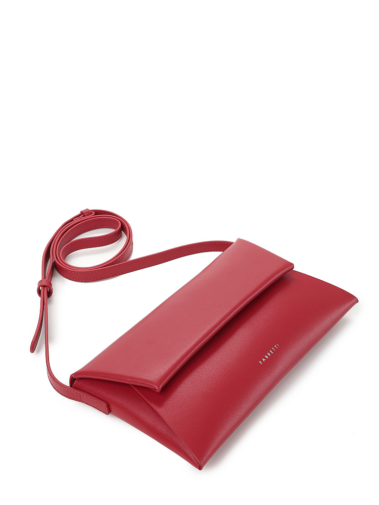 Лаконичная женская сумка-конверт итальянского бренда FABRETTI из гладкой кожи кальф ярко-красного цвета. За простыми формами скрыт сложный дизайн – сумка собрана без швов в виде классического делового конверта, и без лишнего декора и фурнитуры – только строгое тиснение с лого на лицевой стороне.Закрывается одним широким клапаном с двумя скрытыми магнитами. Внутри одно отделение с глубоким открытым карманом. Завершает дизайн тонкий ремешок кросс-боди, регулируемый по длине кнопкой. Длина ремня ок. 125 см. Цвет фурнитуры – серебро.