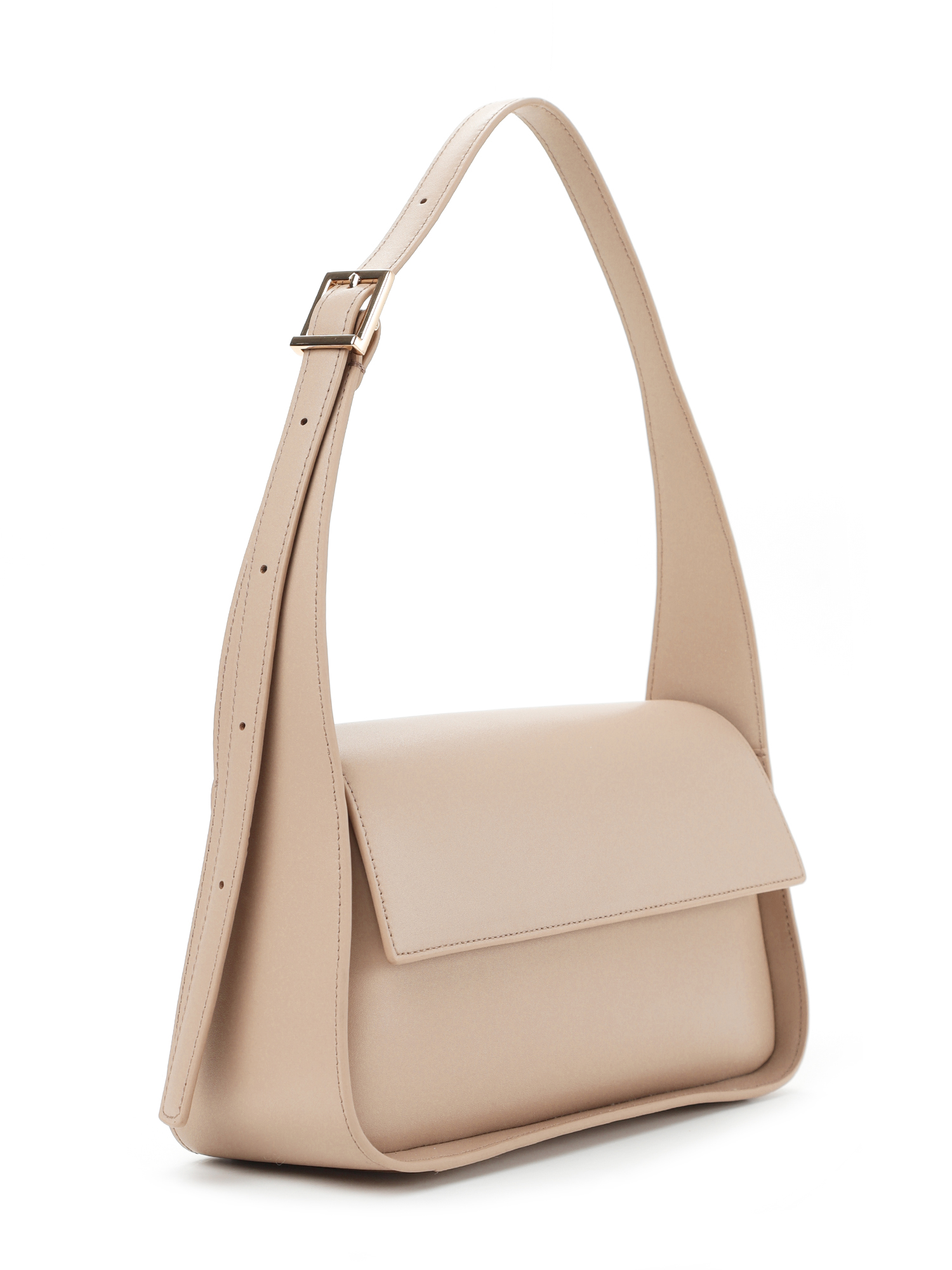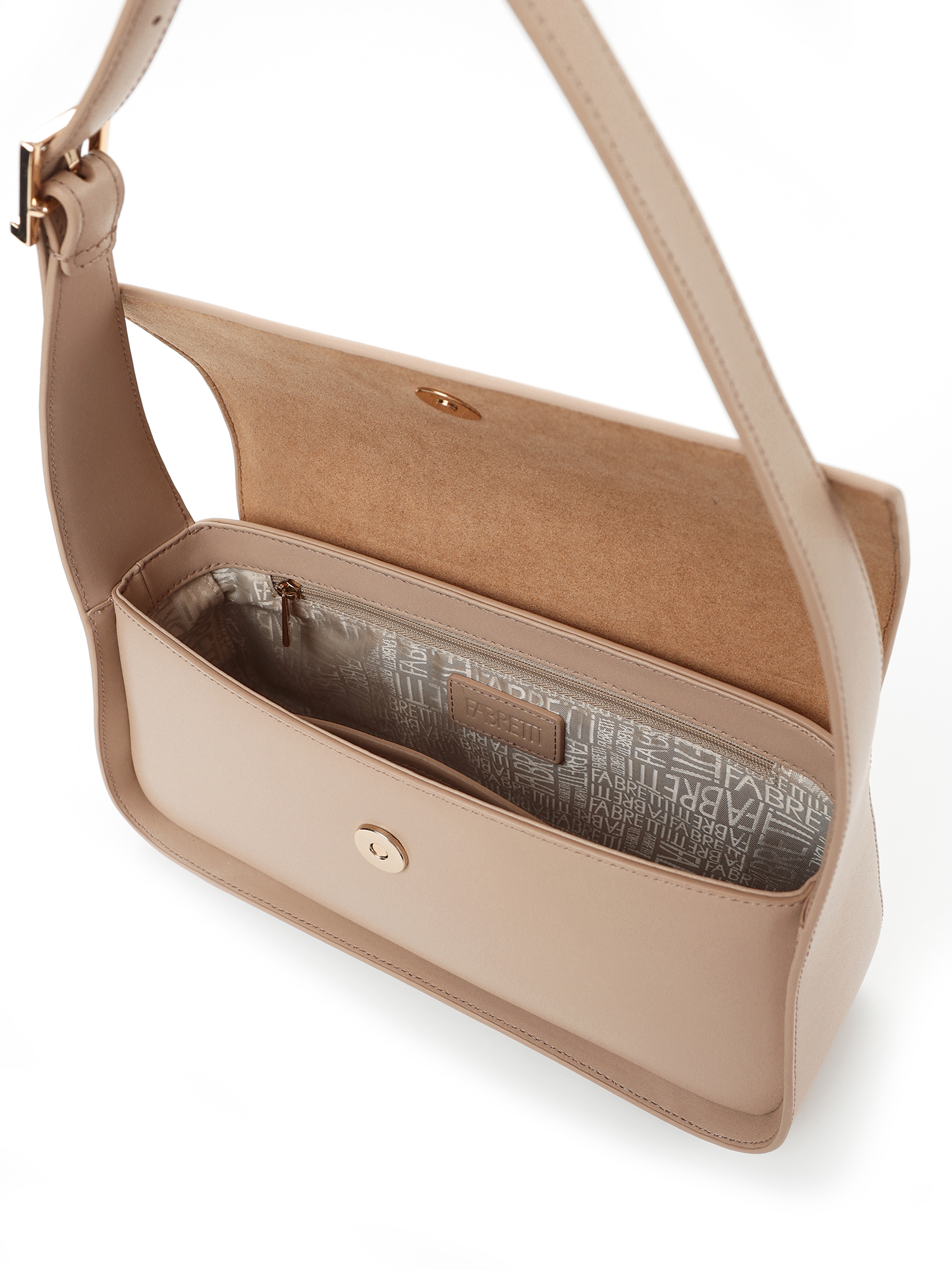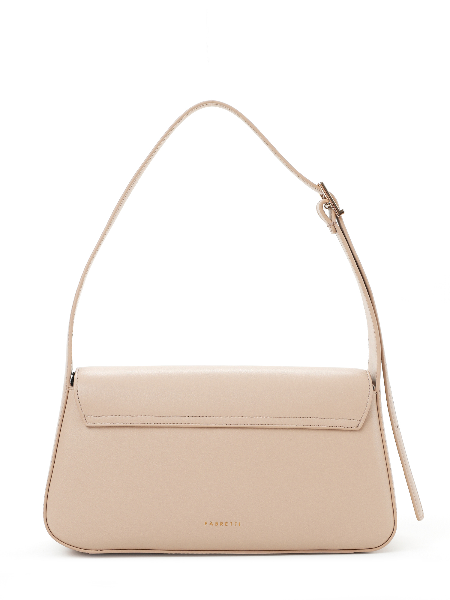 Небольшая прямоугольная женская сумка итальянского бренда FABRETTI в современном минималистичном дизайне с жестким каркасом из гладкой натуральной кожи кальф в теплом «нюдовом» бежевом цвете. Модель закрывается на клапан с магнитной кнопкой, внутри два кармана: открытый и на молнии. Плечевой ремень регулируется по длине пряжкой.Интересная деталь – широкий жесткий кант по лицевой стороне и плавные формы, делающие аксессуар более женственным и «спокойным». Цвет фурнитуры – золото.