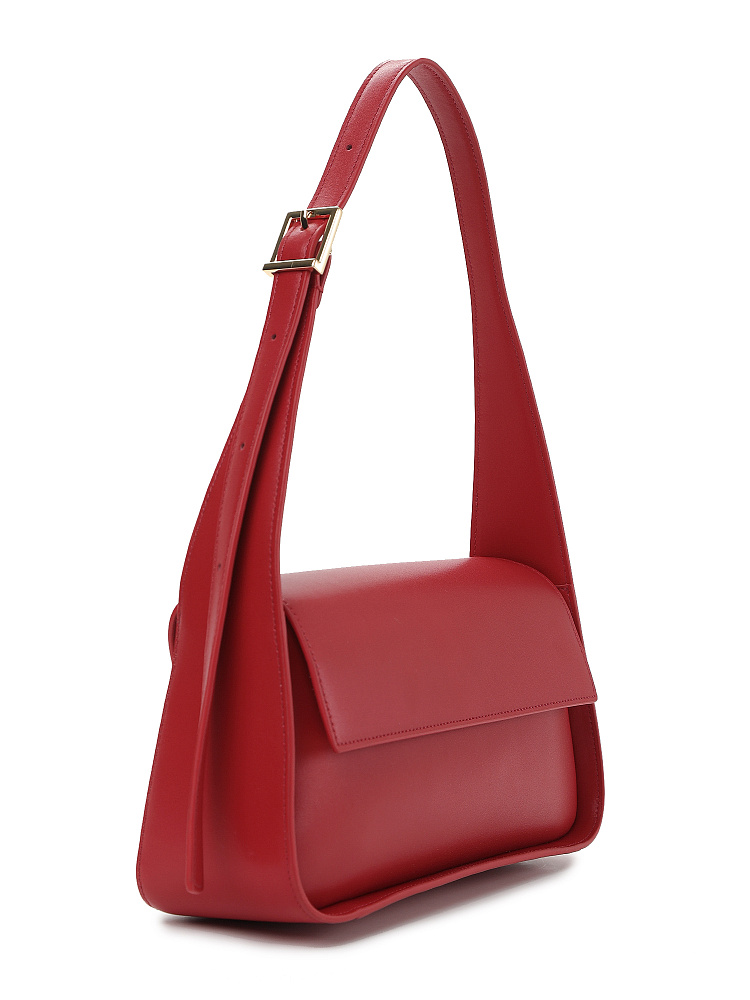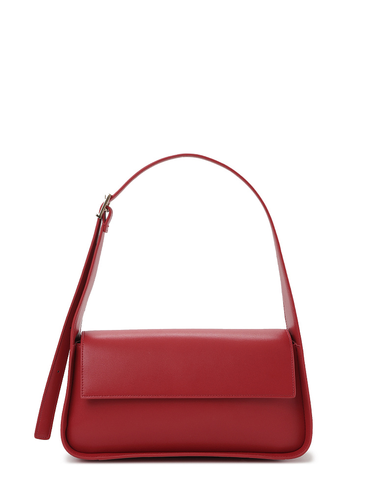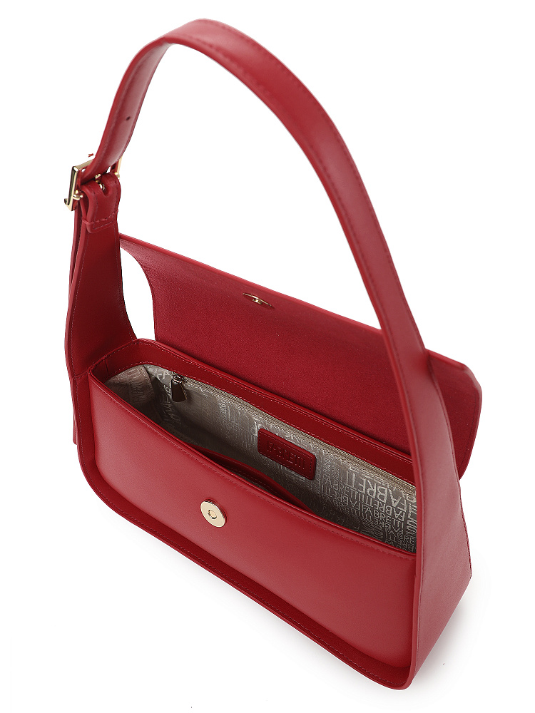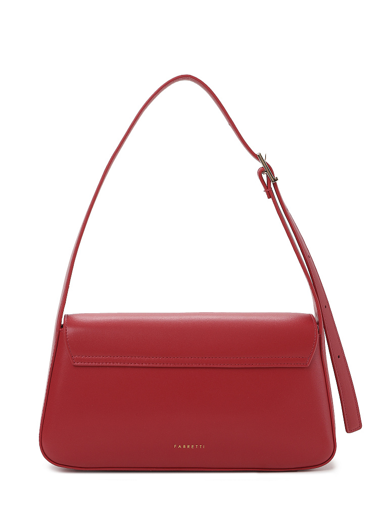 Небольшая прямоугольная женская сумка итальянского бренда FABRETTI в современном минималистичном дизайне с жестким каркасом из гладкой натуральной кожи кальф ярко-красного цвета. Модель закрывается на клапан с магнитной кнопкой, внутри два кармана: открытый и на молнии. Плечевой ремень регулируется по длине пряжкой.Интересная деталь – широкий жесткий кант по лицевой стороне и плавные формы, делающие аксессуар более женственным и «спокойным». Цвет фурнитуры – золото.