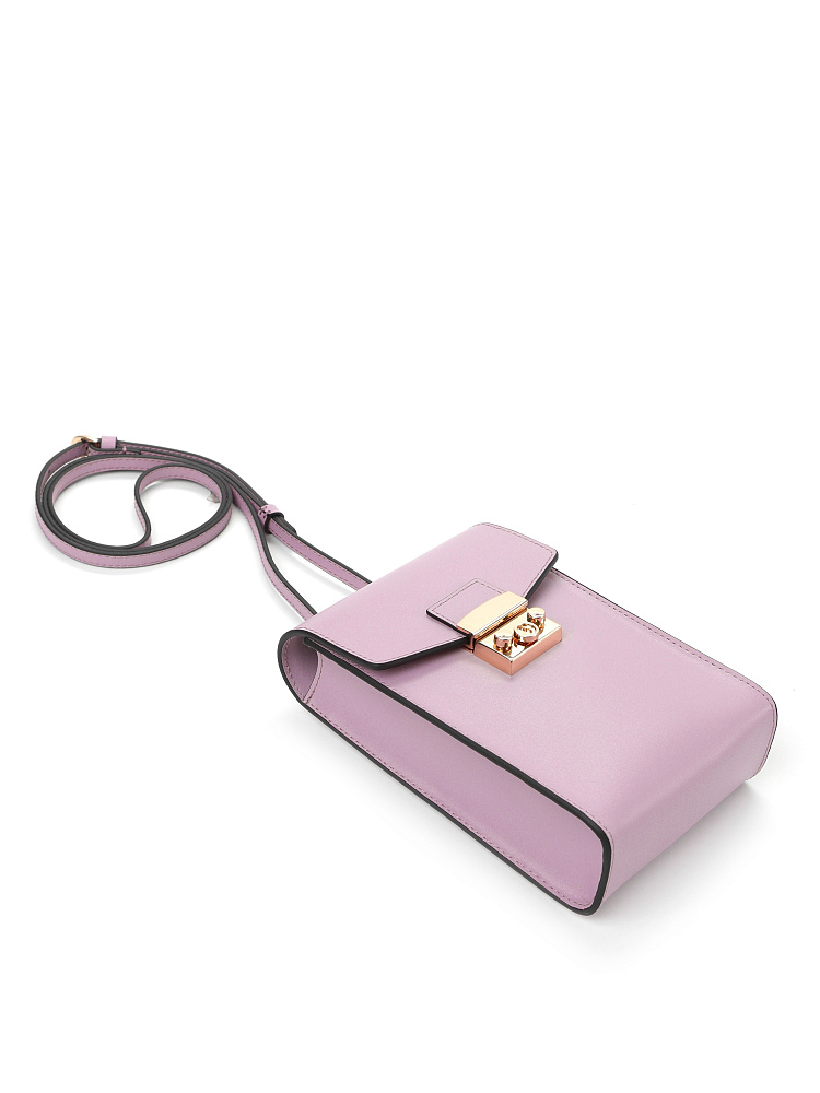 Маленькая женская сумка кросс-боди итальянского бренда FABRETTI из гладкой кожи кальф нежного розового цвета – женственная модель с жестким прямоугольным каркасом. Сумочка закрывается клапаном с необычным защелкивающим замком, внутри небольшой открытый карман. Узкий плечевой ремешок крепится небольшими карабинами к тыльной стороне сумки. Длина регулируется пряжкой. Четкую геометрию сумки подчеркивает контрастный черный кант по срезам.Длина ремня ок. 125см. Цвет фурнитуры – золото.