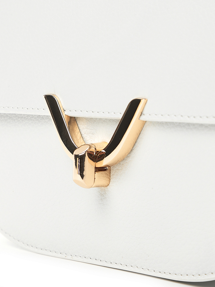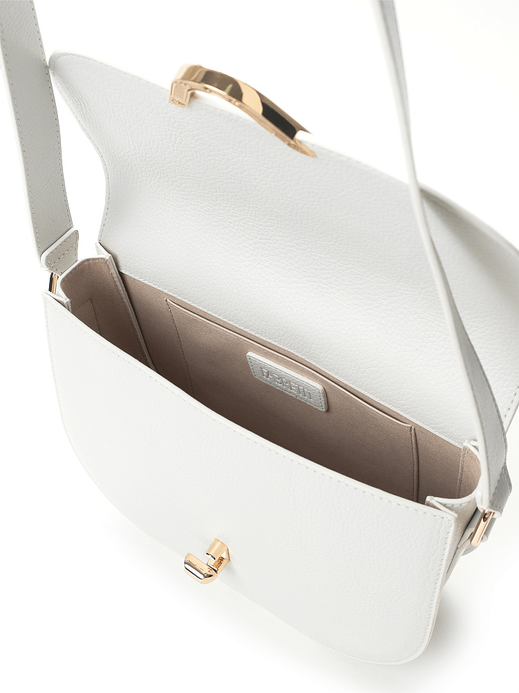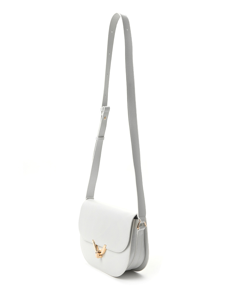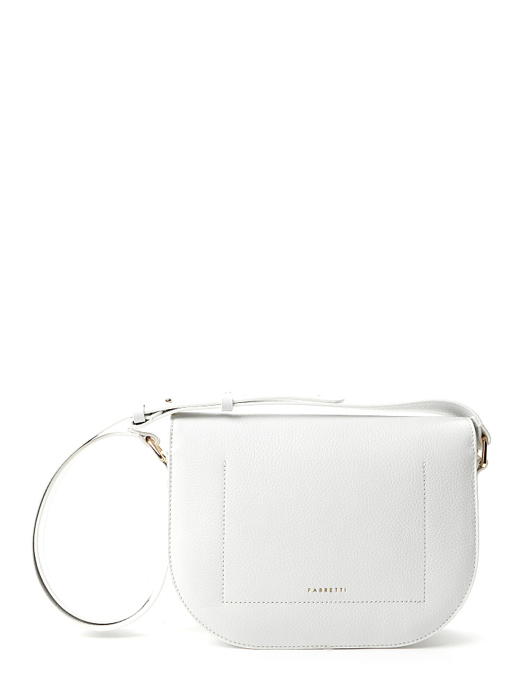 Небольшая женская сумка кросс-боди итальянского бренда FABRETTI из натуральной кожи белого цвета с зернистой фактурой. Изящная модель со сглаженными углами, закрывающаяся клапаном с блестящим золотистым поворотным замком. Внутри одно отделение с небольшим открытым карманом.Кросс-боди — это максимум свободы и мобильности для активного дня. Этот дизайн вне трендов – он актуален в любой сезон и с любым городским гардеробом. Жесткий каркас сумки отлично сохраняет форму.Широкий ремень сумки регулируется при помощи пряжки. Длина ремня ок. 110 см. Цвет фурнитуры – золото.