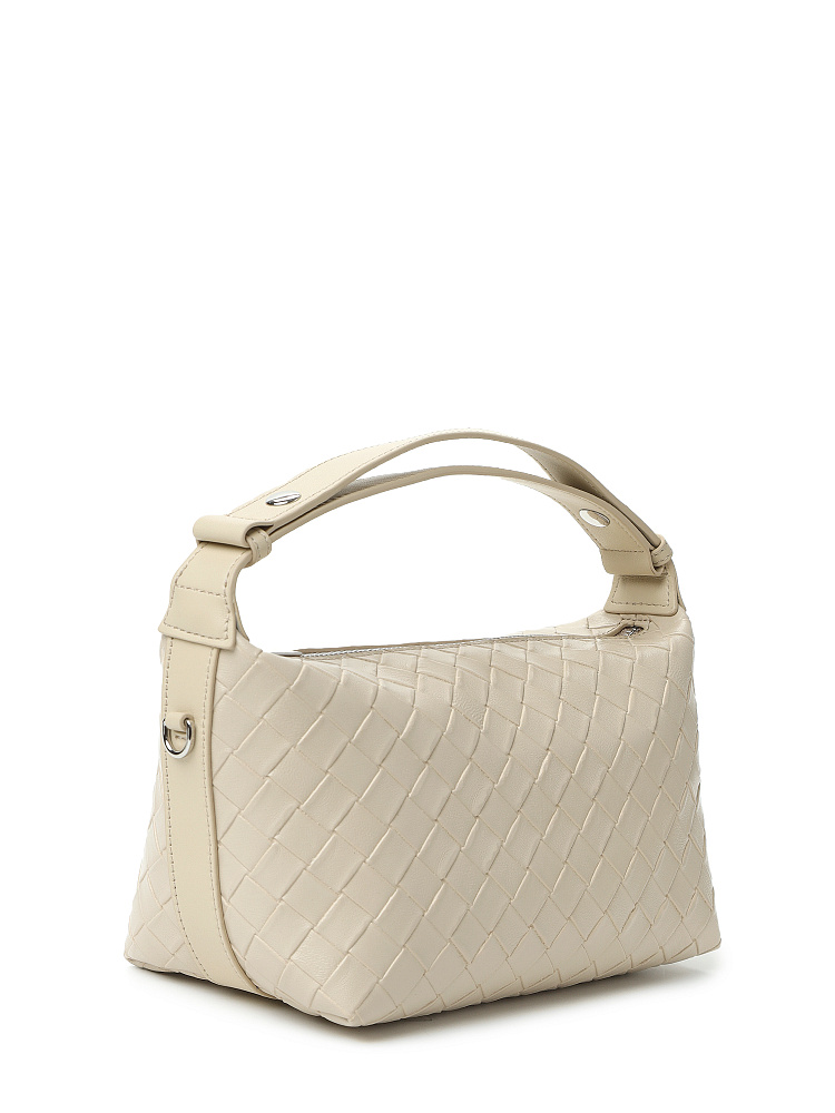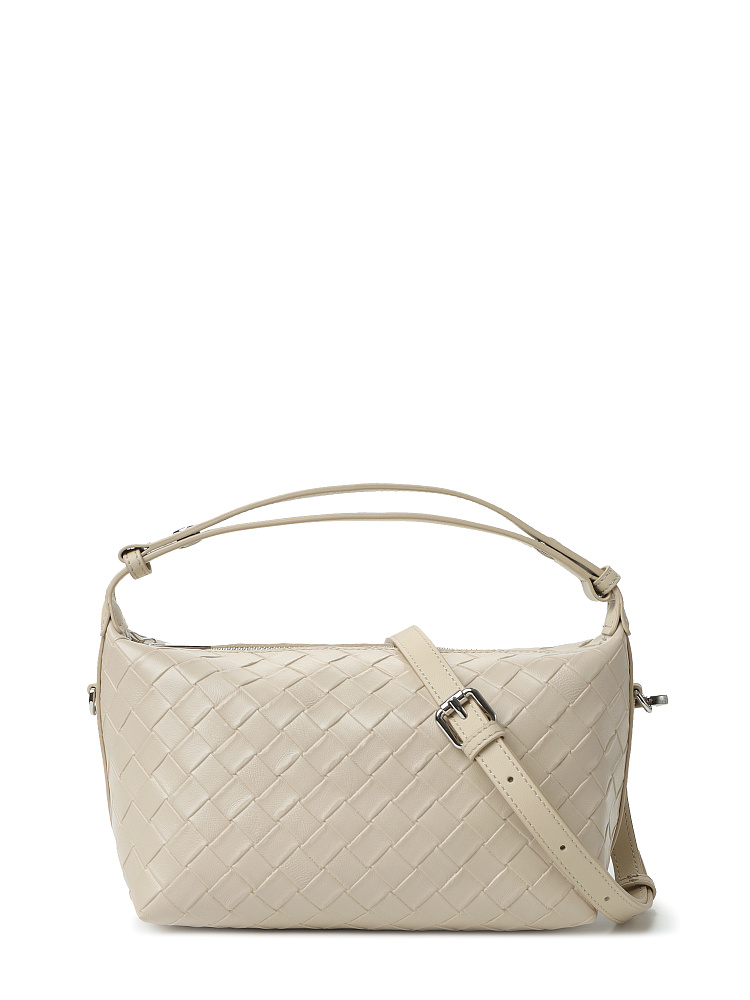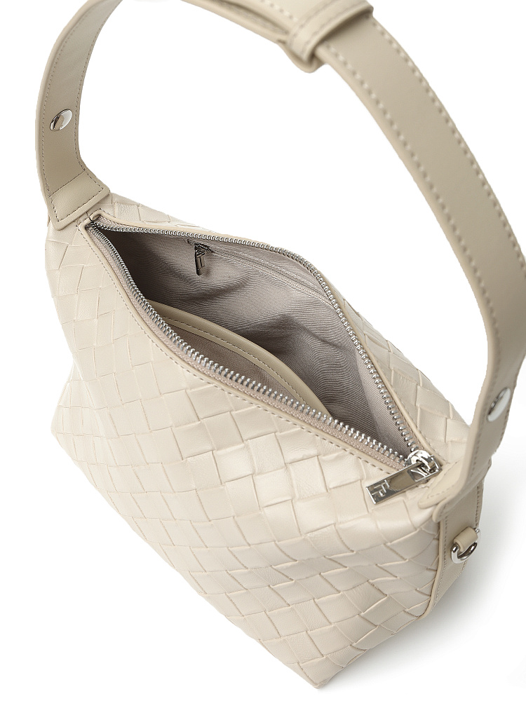 Элегантная женская итальянского бренда FABRETTI выполнена из натуральной крупнозернистой кожи в серо-бежевом цвете. Поверхность украшена оригинальным глубоким тиснением, имитирующим плетеный узор.Единственное отделение закрывается на металлическую молнию, внутри один открытый карман и один на молнии. Модель оснащена двумя ремнями – широким несъемным плечевым ремнем, регулируемым кнопкой и съемным ремешком на карабинах (длина ок. 135 см). Цвет фурнитуры - серебро.
