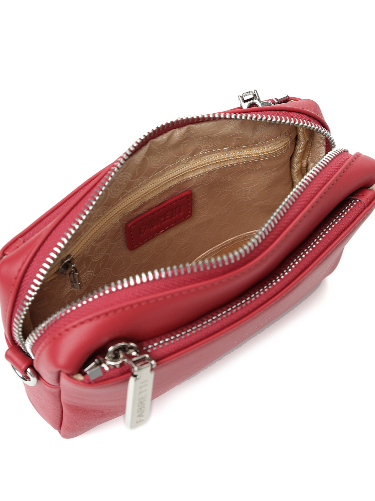 Компактная женская сумка кросс-боди итальянского бренда FABRETTI выполнена из натуральной мелкозернистой кожи наппа.Основное отделение закрывается на полукруглую молнию. Внутри два кармана для мелочей: открытый и на молнии. На лицевой и тыльной стороне расположены карманы быстрого доступа на молнии. Металлические поводки молний украшены фирменными логотипами, на лицевой стороне сумки тиснение с лого.Бежевый - это цвет вне времени, он мягко дополнит любую цветовую гамму образа, от монохрома до ярких акцентов.Несмотря на свою нежность и утончённость, кожа наппа практична и устойчива к появлению мелких царапин.Съемный плечевой ремень на карабинах регулируется по длине, длина ок. 115 см, ширина 1 см . Цвет фурнитуры - золото