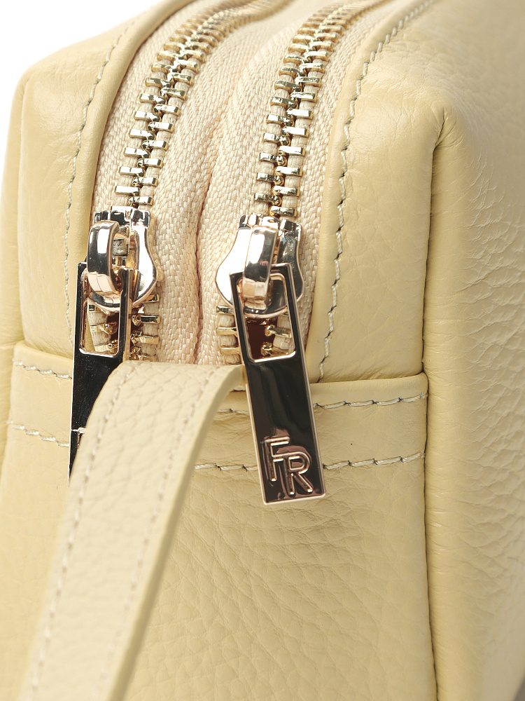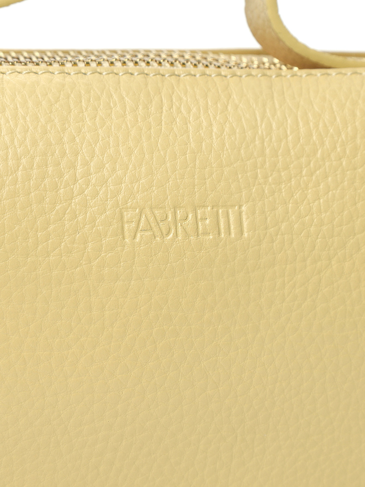 Лаконичная женская сумка кросс-боди итальянского бренда FABRETTI выполнена из натуральной крупнозернистой кожи.Эта миниатюрная модель имеет два отделения на полукруглых металлических молниях, с однотонной хлопковой подкладкой в тон коже. Внутри одного отделения карман на молнии. Лицевая сторона украшена тиснением в виде логотипа.У сумки несъемный узкий ремень, регулируемый по длине пряжкой. Максимальная длина ок. 140 см, ширина 1,5 см. Цвет фурнитуры - золото.Белая сумочка – самый летний аксессуар, который легко дополнит и повседневный, и деловой образ, не важно однотонный он или с яркими принтами и узорами.