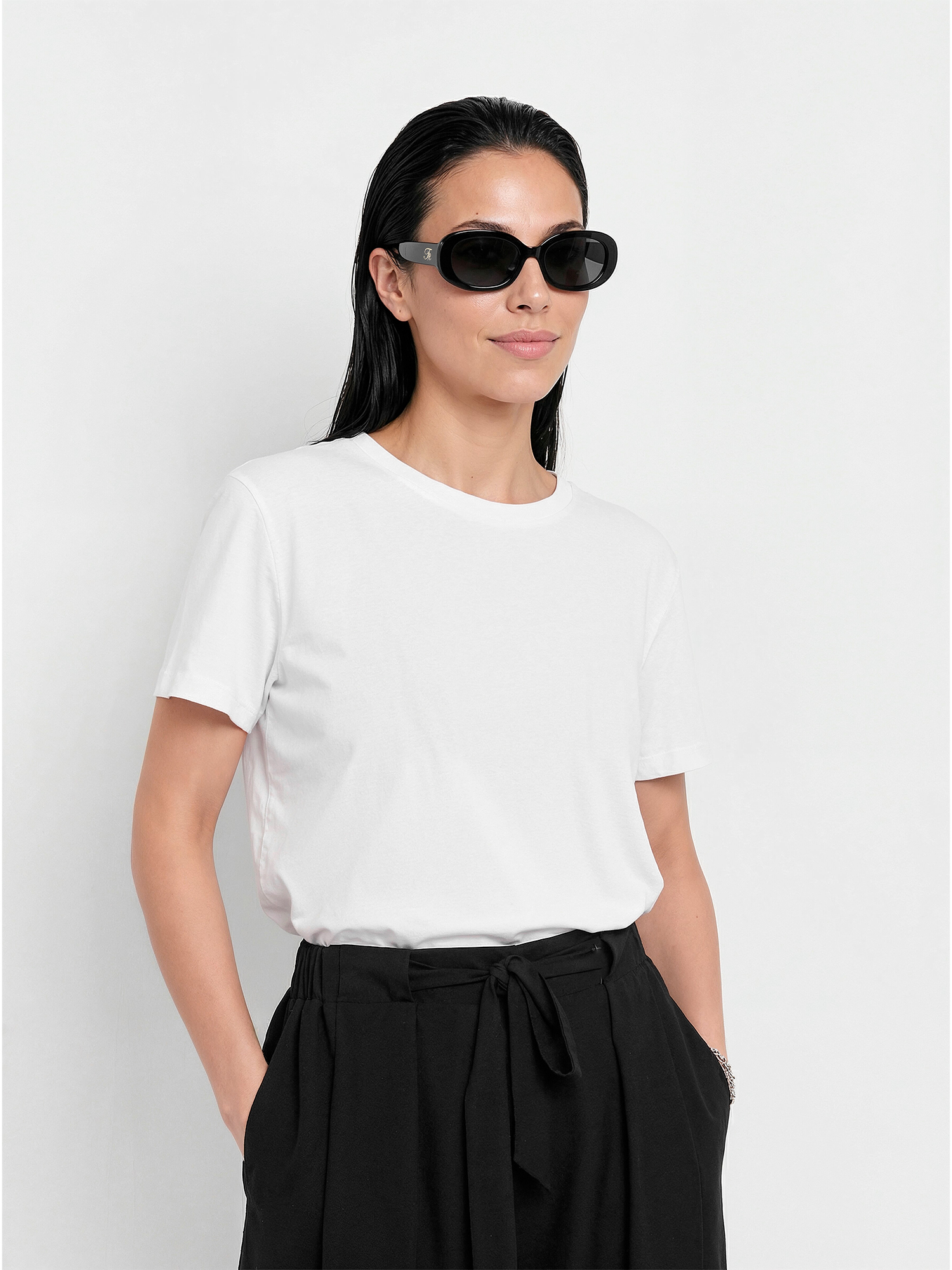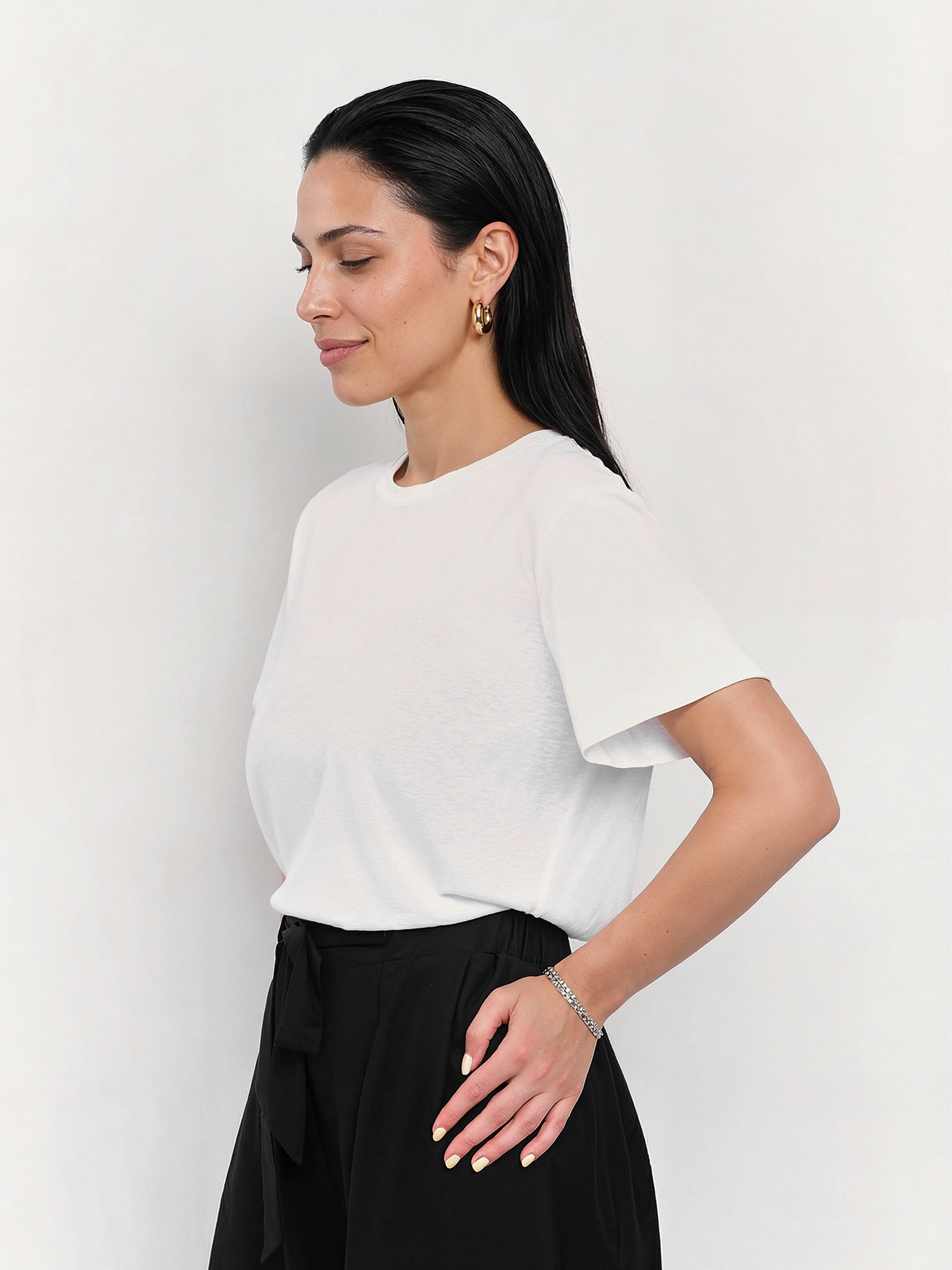 Легкая летняя женская футболка итальянского бренда FABRETTI белого цвета из тонкой и неплотной хлопковой ткани.У модели актуальный А-силуэт, короткие рукава, округлый вырез горловины с обтачкой. Легкий хлопок – идеальный материал для летнего сезона. Он отлично пропускает воздух, быстро отводит влагу от тела и также быстро сохнет.Однотонная футболка – универсальный базовый аксессуар, которым можно дополнить юбки различной длины, джинсы, брюки и шорты. Она хорошо сочетается с одежной с принтами, так как визуально «разгружает» образ, делая его более гармоничным и сбалансированным.
