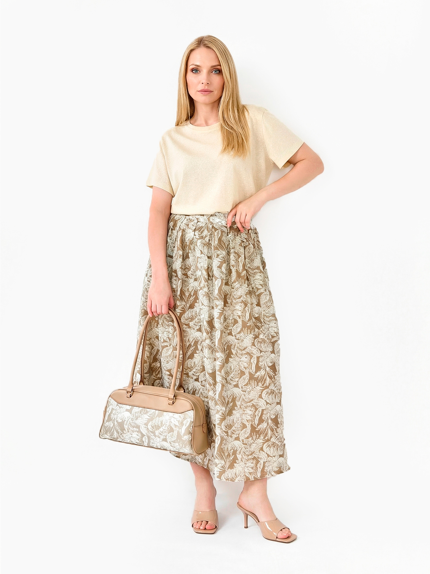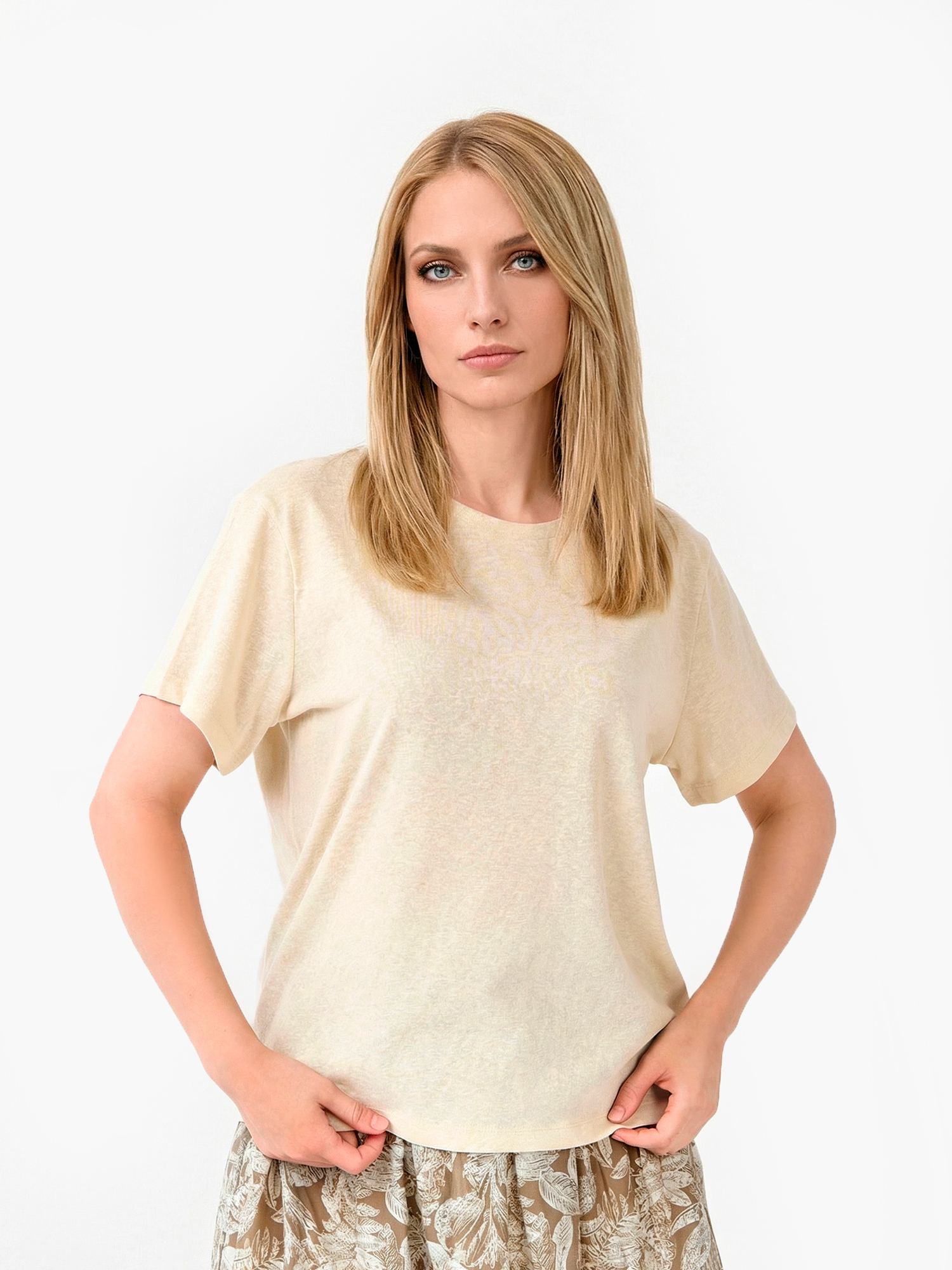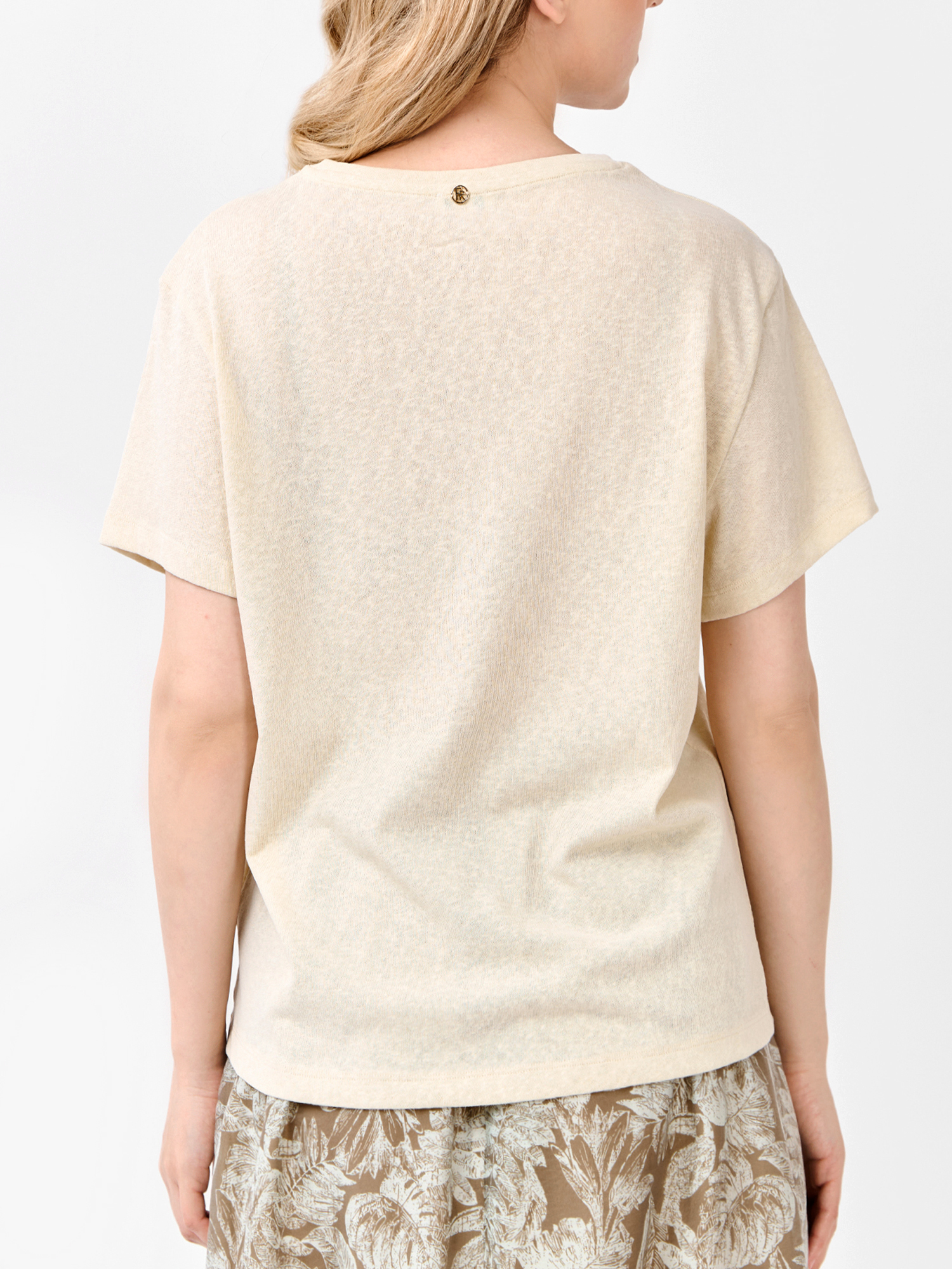 Легкая летняя женская футболка итальянского бренда FABRETTI цвета хаки из тонкой и неплотной хлопковой ткани.У модели актуальный А-силуэт, короткие рукава, округлый вырез горловины с обтачкой. Легкий хлопок с добавлением синтетических волокон – идеальный материал для летнего сезона. Он отлично пропускает воздух, быстро отводит влагу от тела и также быстро сохнет.Однотонная футболка – универсальный базовый аксессуар, которым можно дополнить юбки различной длины, джинсы, брюки и шорты. Она хорошо сочетается с одежной с принтами, так как визуально «разгружает» образ, делая его более гармоничным и сбалансированным.