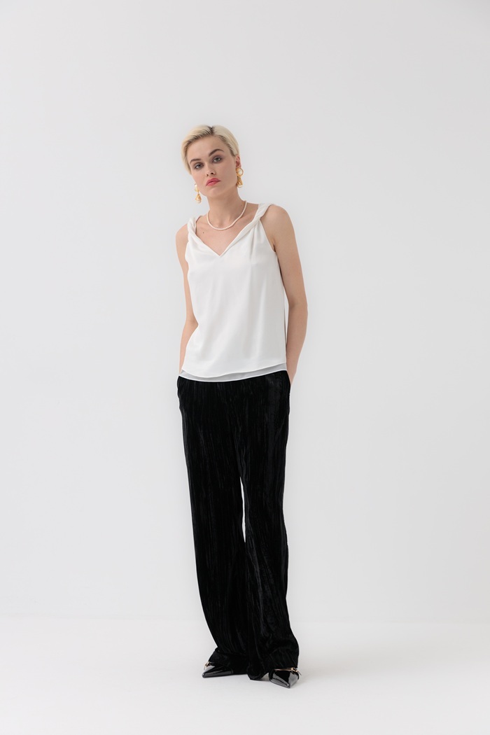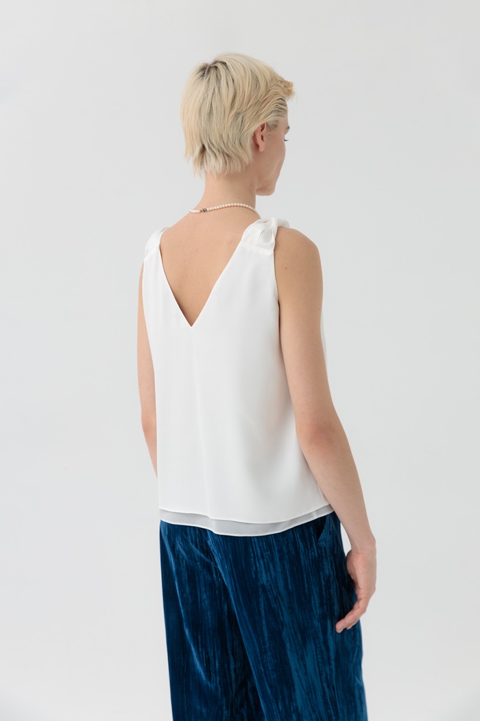 Топ «Стельвио» — воплощение утончённой элегантности.Нежный белый оттенок, изысканный драпированный крой и глубокий V-образный вырез создают лаконичный, но выразительный образ.Лёгкая ткань и изящные детали делают его идеальным выбором для стильных повседневных и вечерних луков.Чистота линий и благородная простота — в каждой детали!