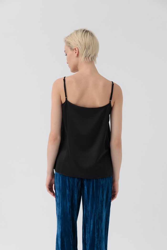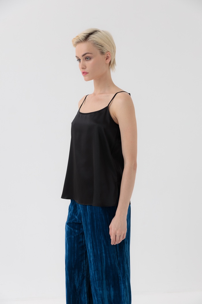 Топ на тонких регулируемых бретелях- незаменимый элемент, помогающий создавать нарядные образы с различными моделями из нашей зимней новогодней коллекции.