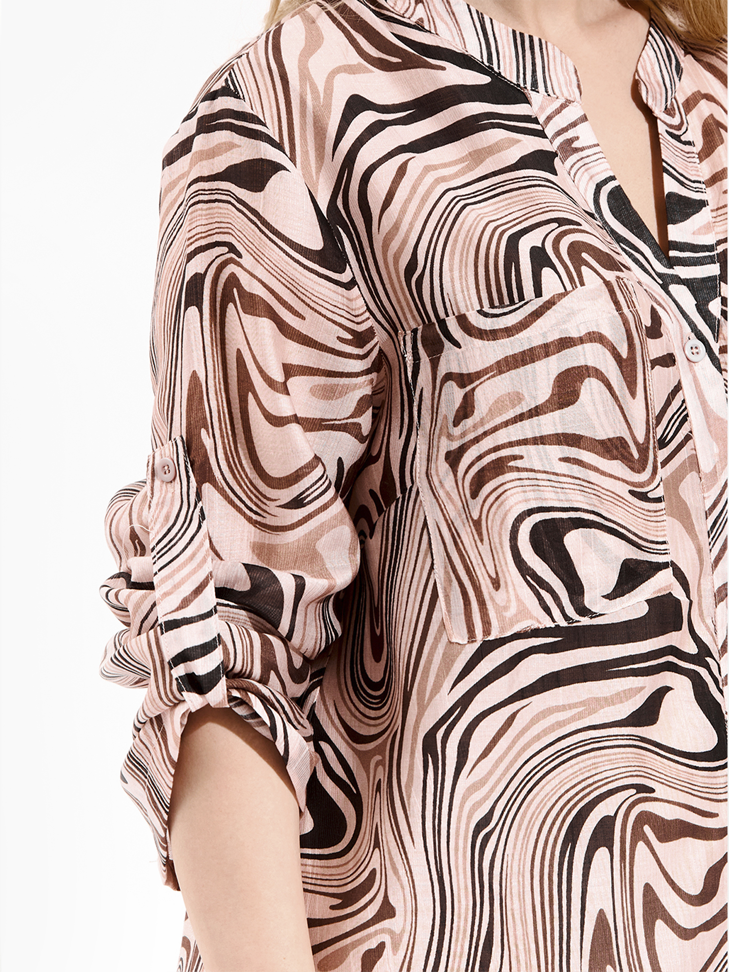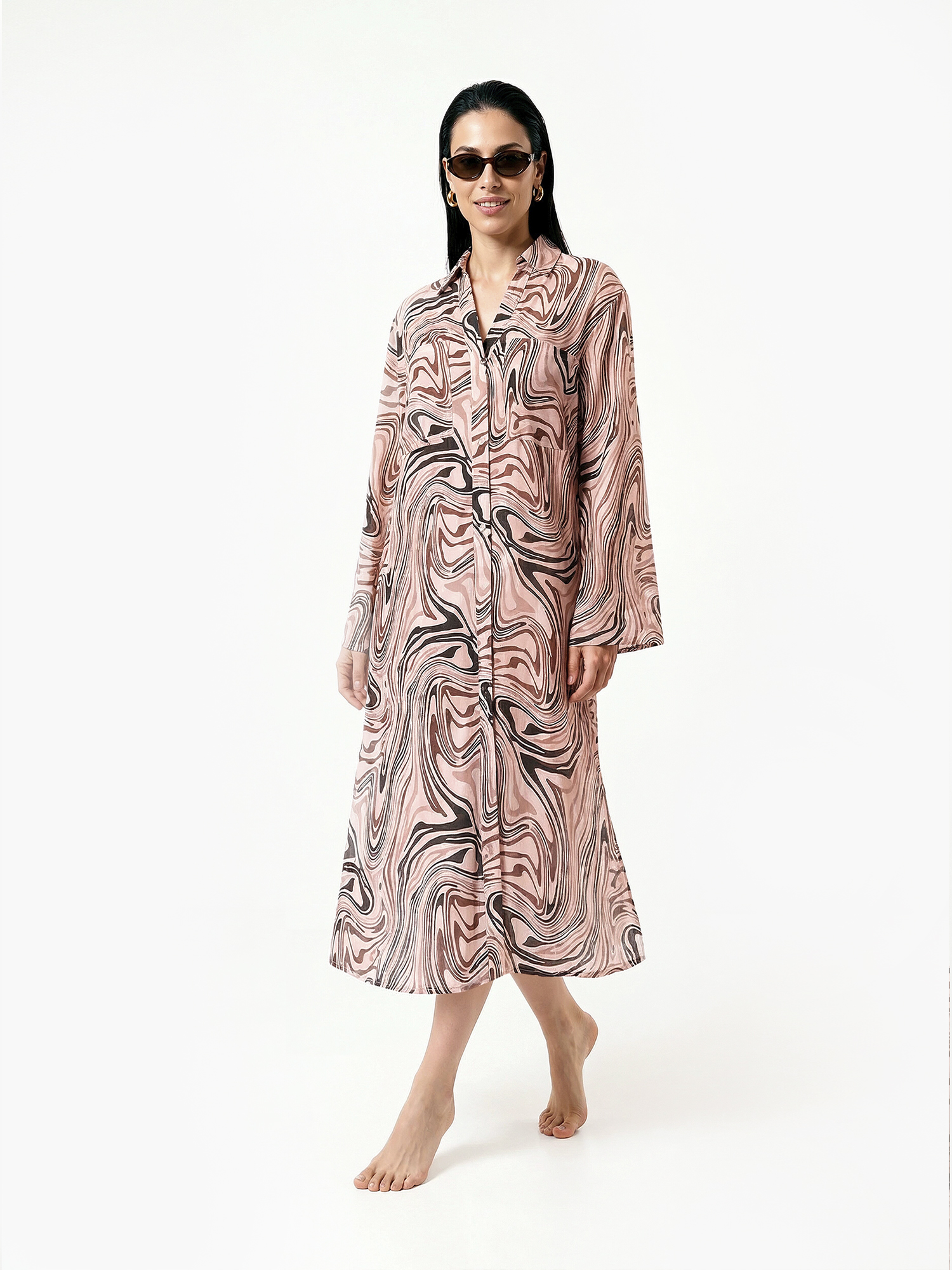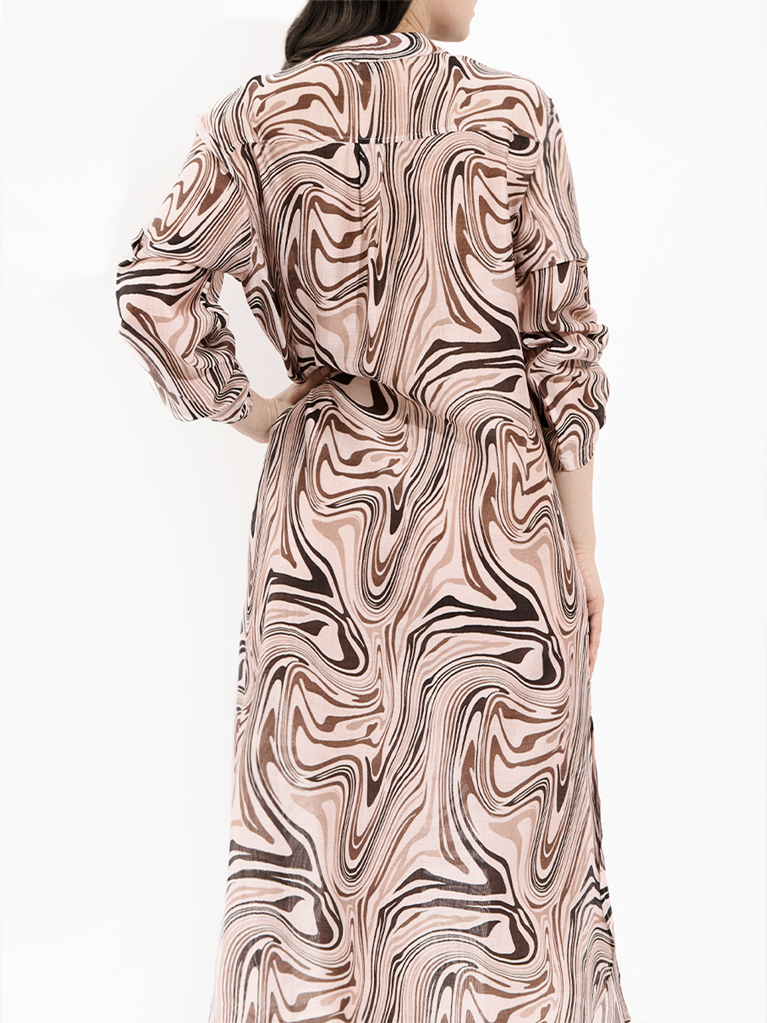 Легкое и элегантное длинное летнее платье итальянского бренда FABRETTI идеально подходит для пляжного отдыха и жаркого лета в городе. Оно выполнено из дышащего, полупрозрачного синтетического материала со сложным абстрактным узором в бежево-коричневой гамме.У модели А-силуэт с вытачками под грудью и разрезами от колена по бокам. На груди накладные карманы. V-образный вырез горловины визуально удлиняет шею. Платье застегивается на планку с пуговицами, рукава также можно зафиксировать внутренним хлястиком с пуговицей.Эта легкая, летящая модель создает женственный и романтичный образ. Дополнить его можно аксессуарами из натуральных материалов – соломенной шляпкой или сумкой, плетеным текстильным поясом или бижутерией в стиле бохо.