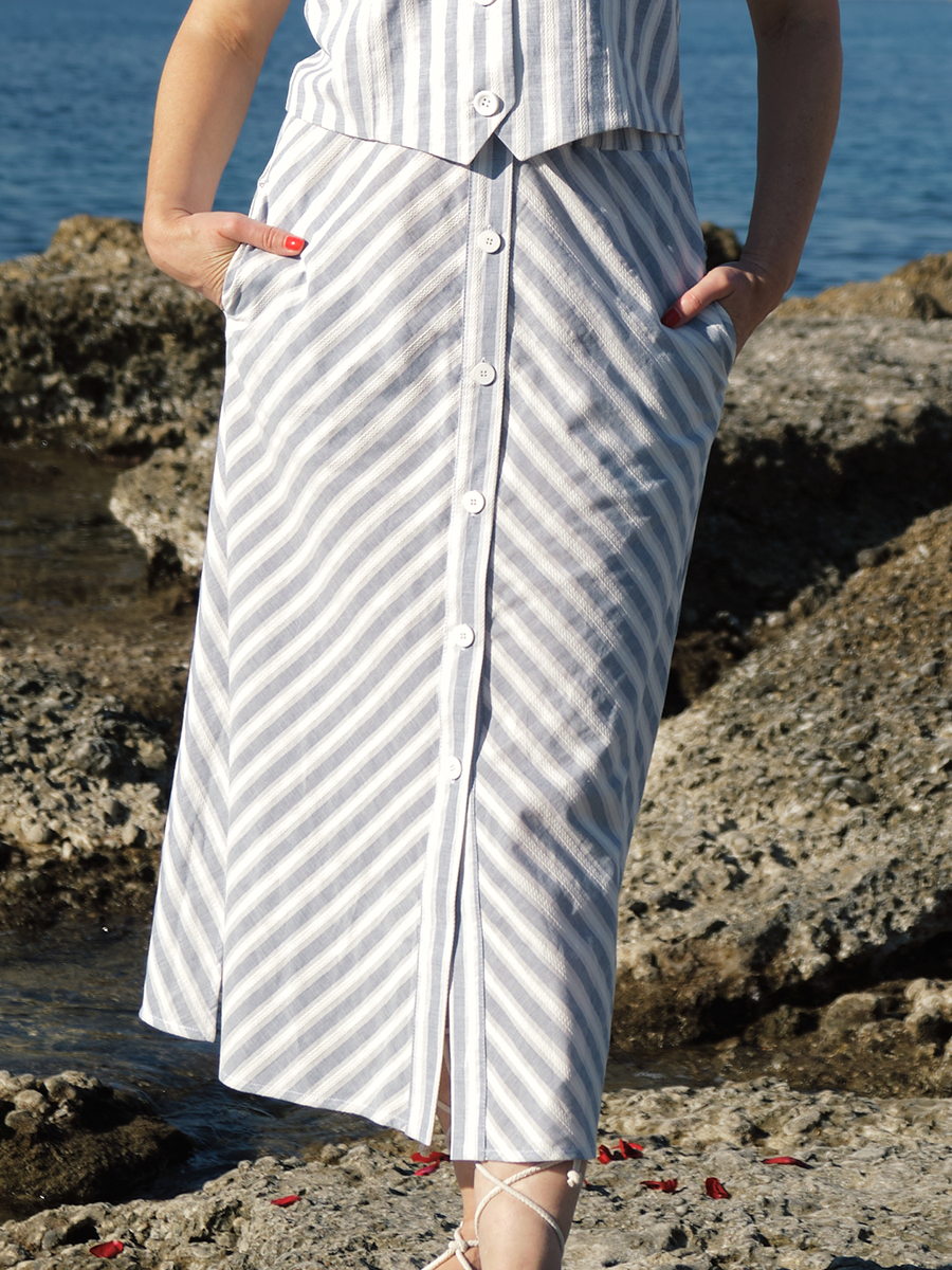 - удлиненная юбка в стиле кэжуал- коническая форма- застежка на планку с пуговицами<- пояс на мягкой резинке позволяет регулировать посадку модели- боковые карманы