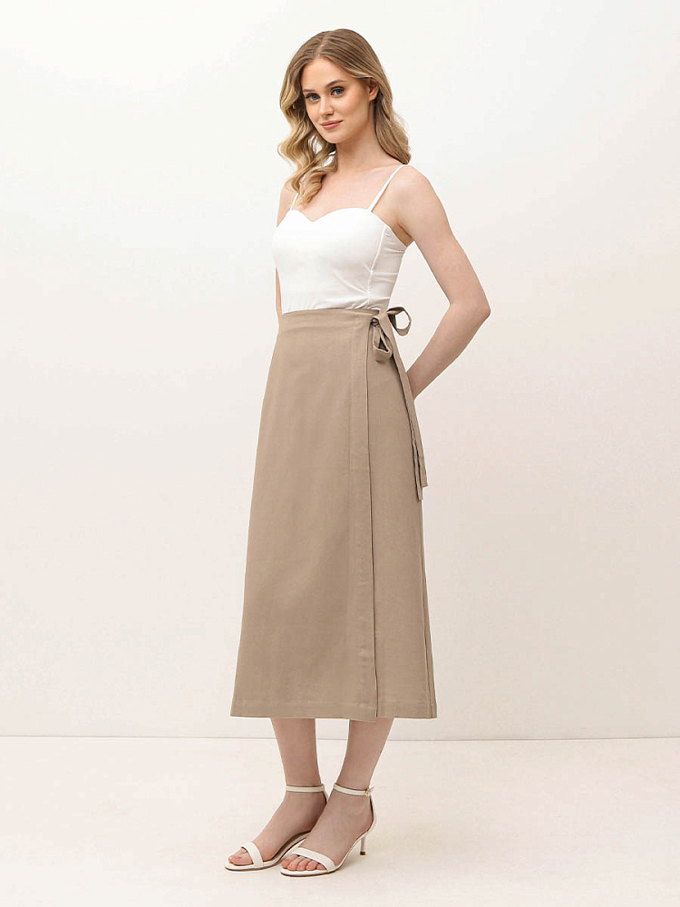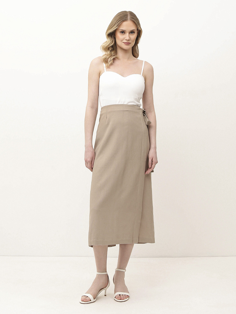 Юбка летняя женская итальянского бренда FABRETTI выполнена из 70% льна и 30% вискозы. Юбка миди на запах имеет свободный крой, который обеспечивает удобство движений и не стесняет тело. Завышенная талия визуально удлиняет силуэт, подчеркивая женственность. Пояс на талии завязывается на бант, что позволяет регулировать посадку и создавать индивидуальный образ.