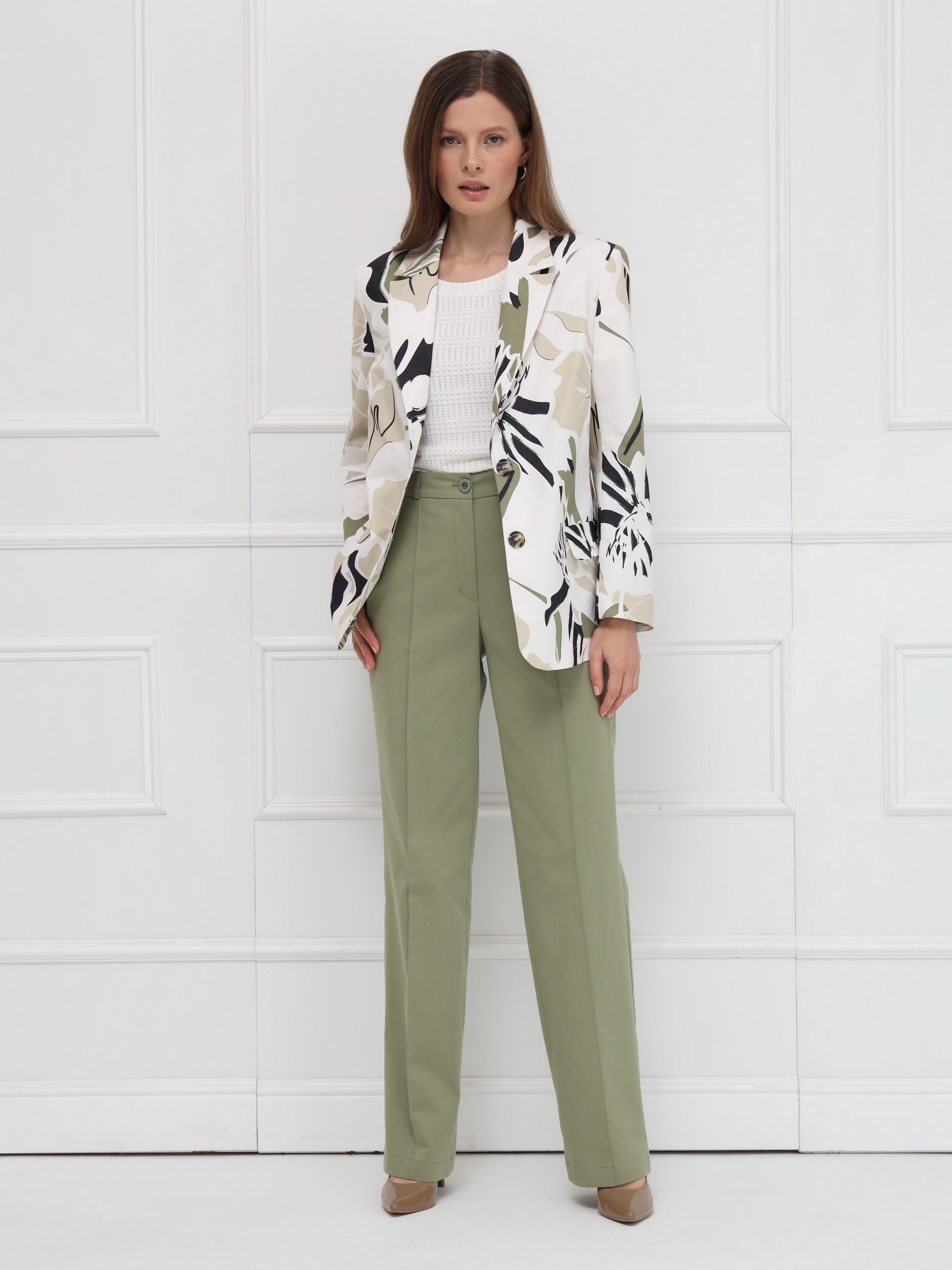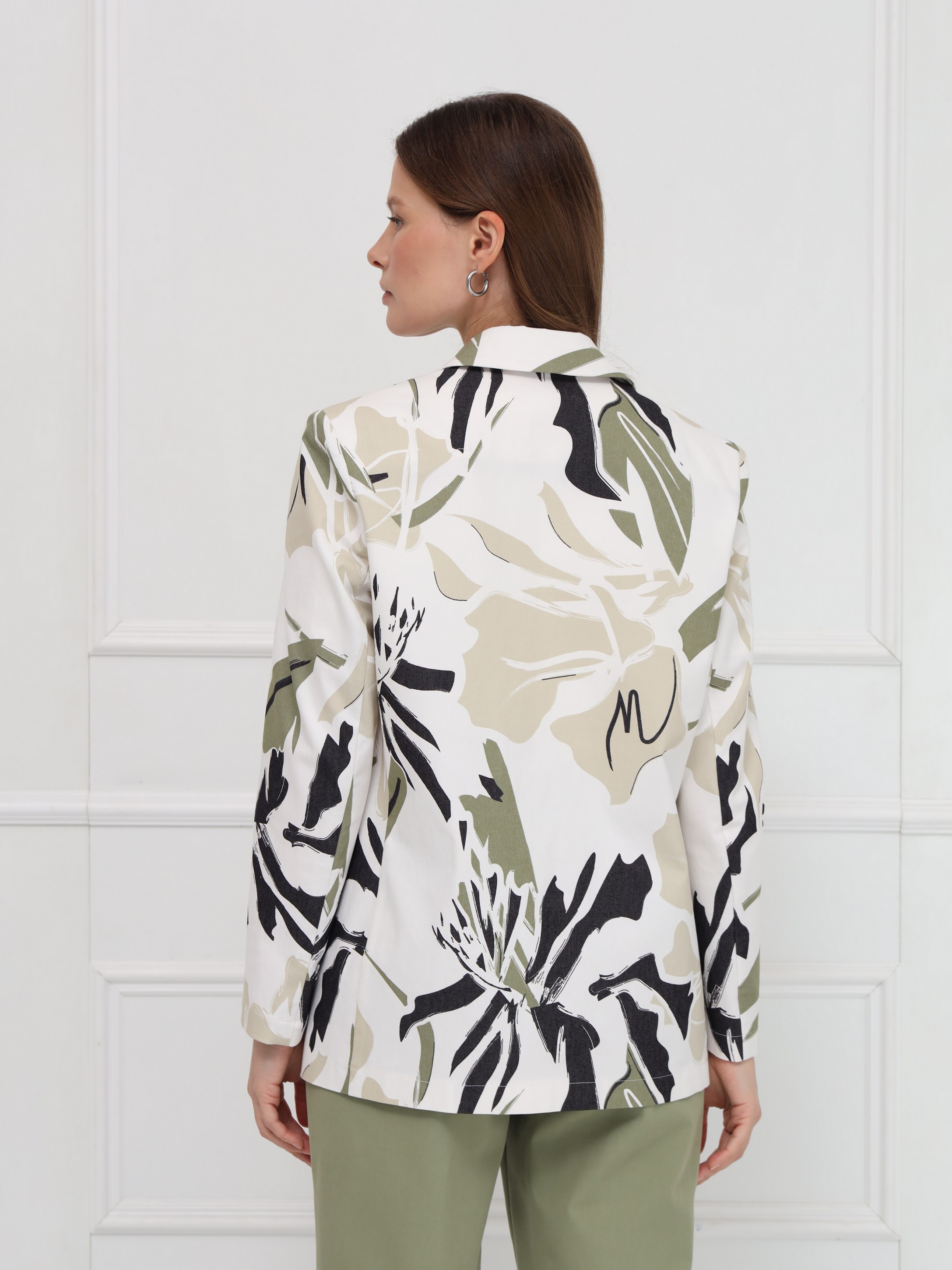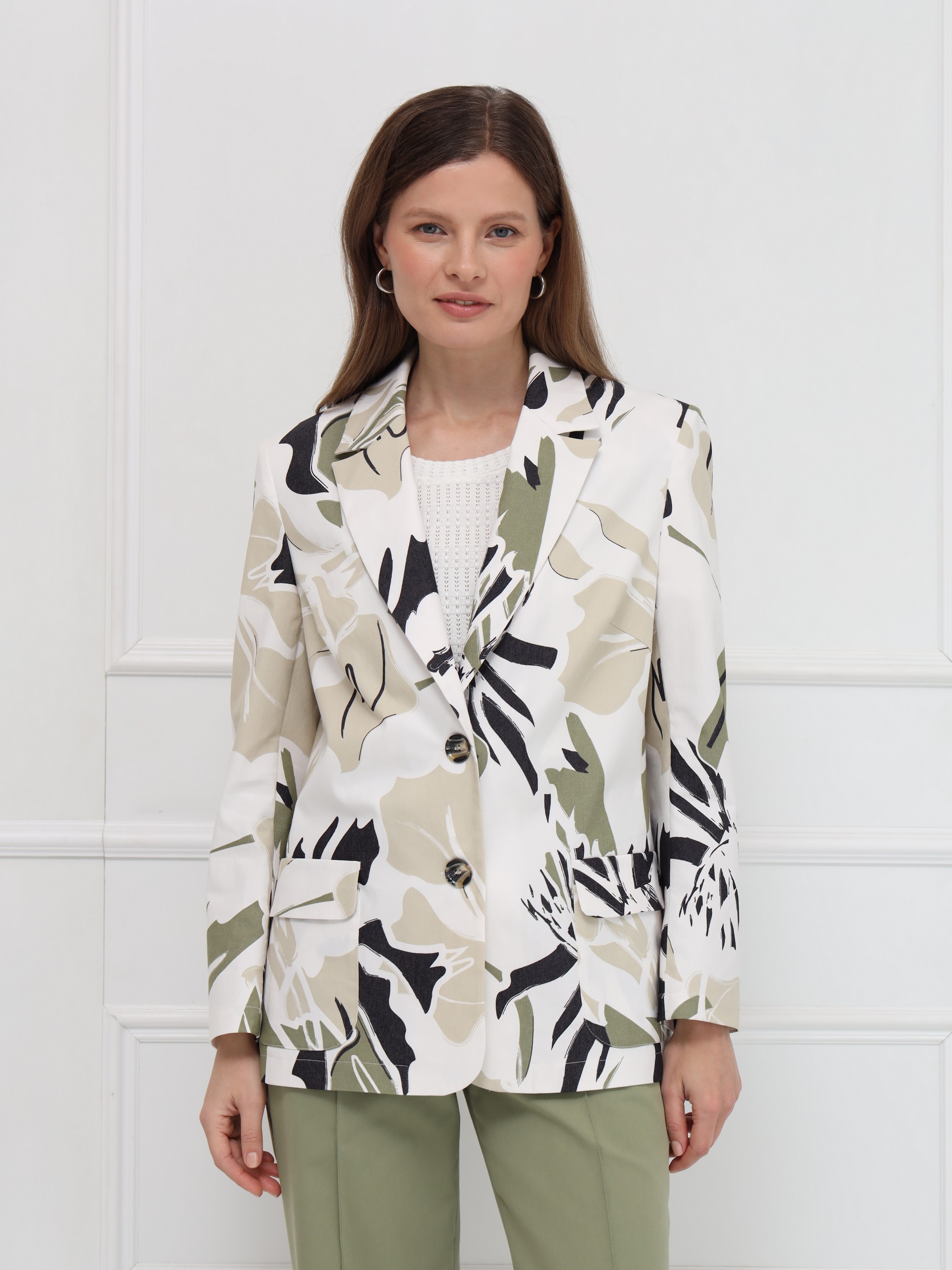 Яркий хлопковый жакет с абстрактным разноцветным принтом станет эффектным акцентом вашего гардероба. Лёгкая модель без подкладки обеспечивает комфорт и свободу движений, а прямой силуэт и аккуратная линия плеч создают современный, структурированный образ. Узкие лацканы добавляют изящества, накладные карманы с клапанами делают жакет практичным, а застёжка на две пуговицы подчёркивает классический характер. Идеален для повседневных и городских образов - легко сочетается с джинсами, брюками и однотонными платьями.