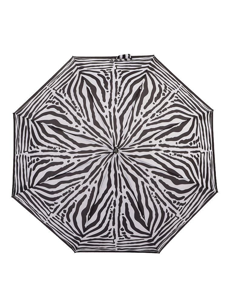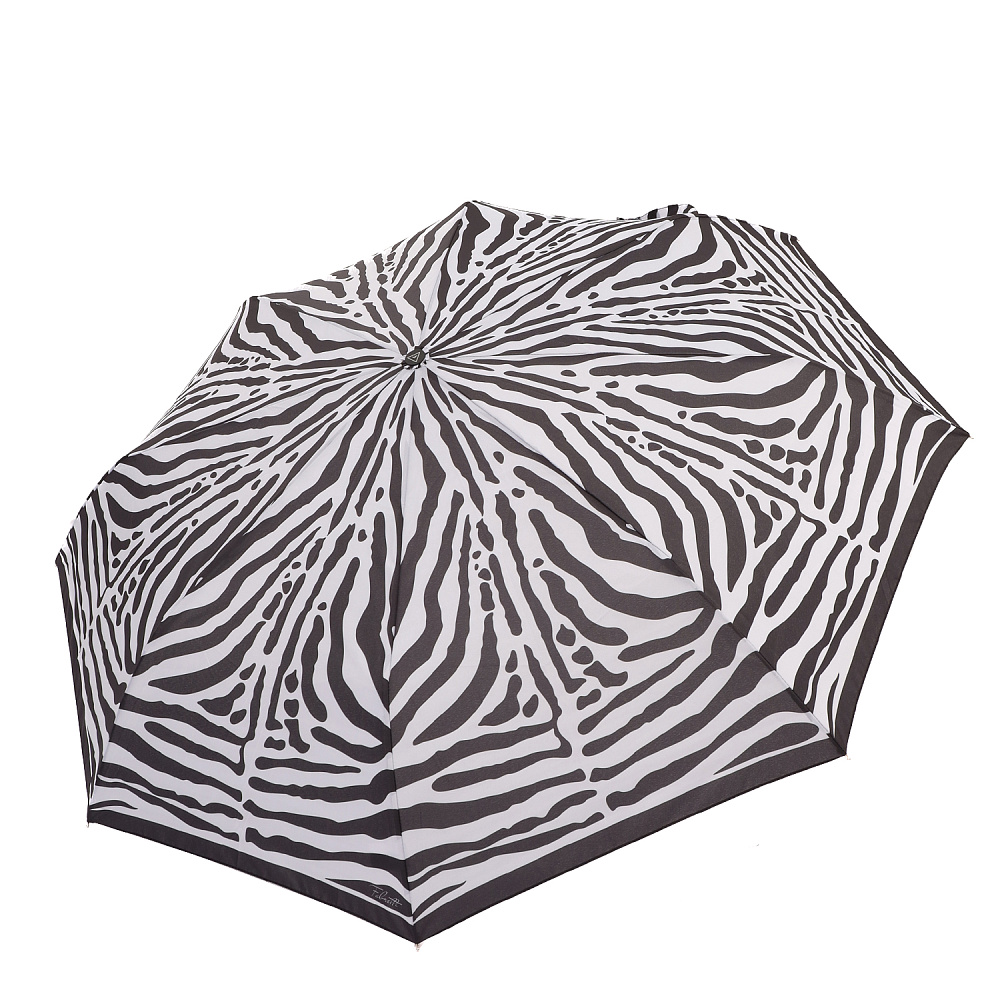 Небольшой женский зонт-автомат итальянского бренда FABRETTI украшенный монохромным черно-белым анималистичным узором «под зебру».Купол выполнен из материала с матовой фактурой эпонж. Она придает ткани высокую прочность и устойчивость к выцветанию. Вода, попадая на такой купол, превращается в капли и легко скатываться вниз.Облегченная конструкция зонта изготовлена из алюминия. Аксессуар открывается и закрывается одним нажатием кнопки на удобной нескользящей ручке с петлей. Комплекс пружин и звеньев спиц сделаны из гибкого и упругого материала углепластика и фибергласса и составляют основу системы «антиветер».Зонт дополнен удобным чехлом.